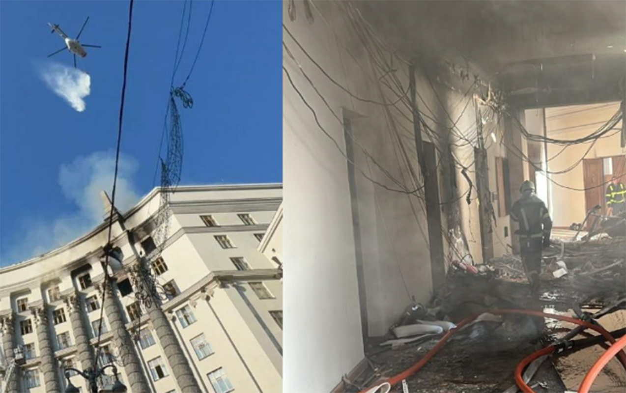 Kiyevə PUA hücumundan sonra hökumət binasında yanğın oldu
