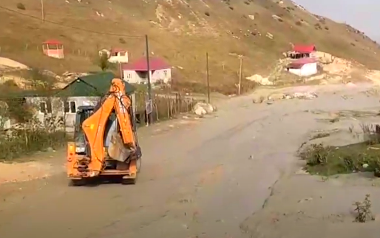 Laza yolu lil və palçıqdan təmizlənir