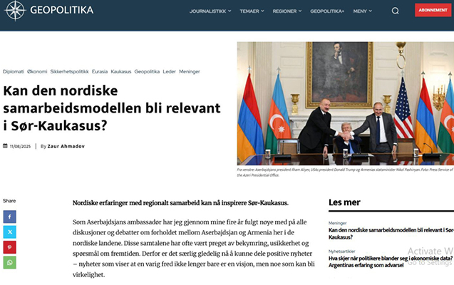 “Geopolitika”da Vaşinqtonda imzalanan saziş haqqında məqalə dərc olundu