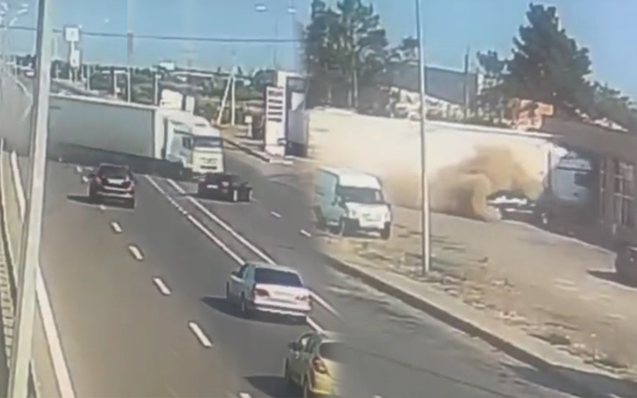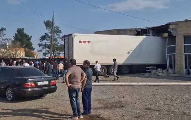 Goranboyda yük maşını obyektə çırpıldı