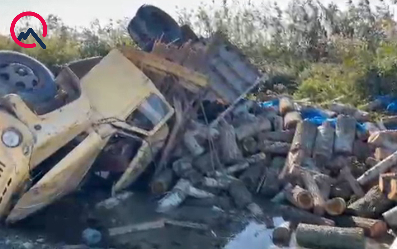 Odunla dolu yük maşını aşdı
