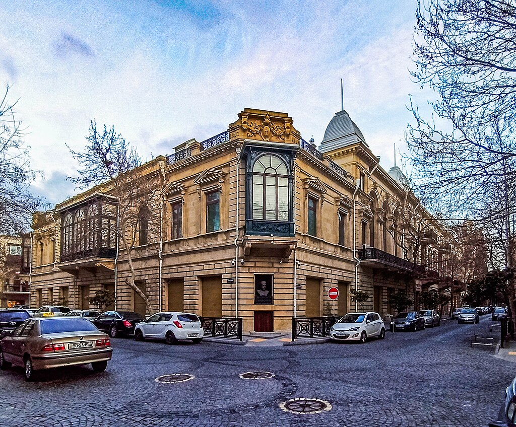 XIX əsrin sonlarında inşa edilmiş bu bina, Bakının ilk neft xadimi və xeyriyyəçisi Hacı Zeynalabdin Tağıyev tərəfindən tikilib. Bina neoklassik üslubu və incə dekorativ elementləri ilə seçilir. Tağıyevin evi həm də sosial həyatın mərkəzi olmuş, ziyafətlər və xeyriyyə tədbirləri üçün istifadə edilib.