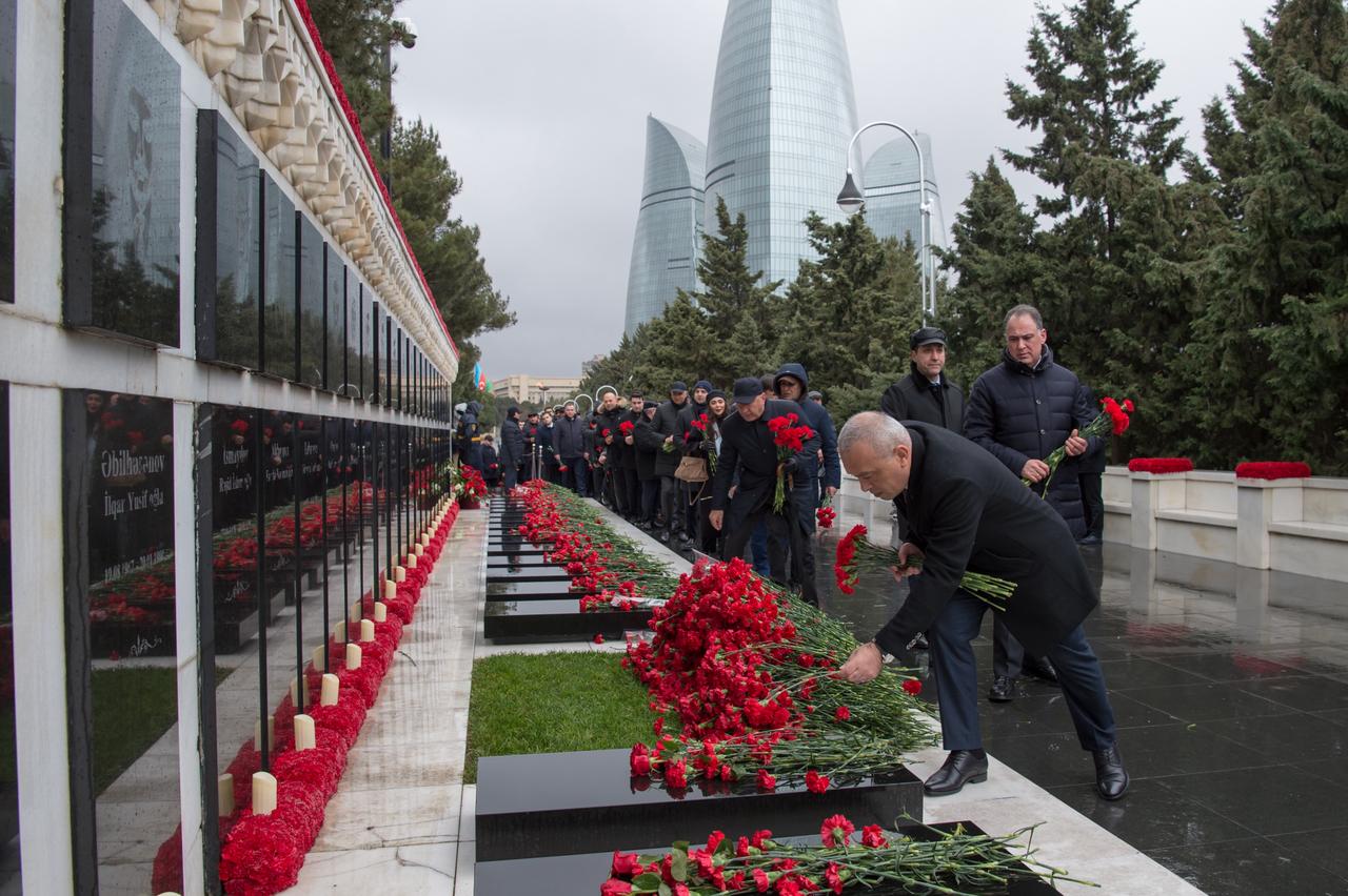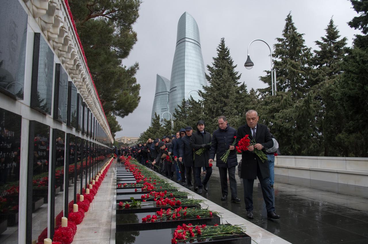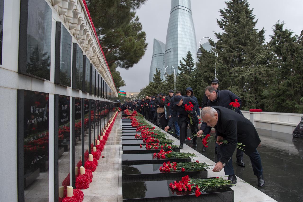 Bildiirlib ki, Azərbaycanın azadlığı uğrunda canından keçmiş Vətən övladlarının müqəddəs xatirəsi ehtiramla yad edilib, məzarlarına qərənfillər düzülüb.