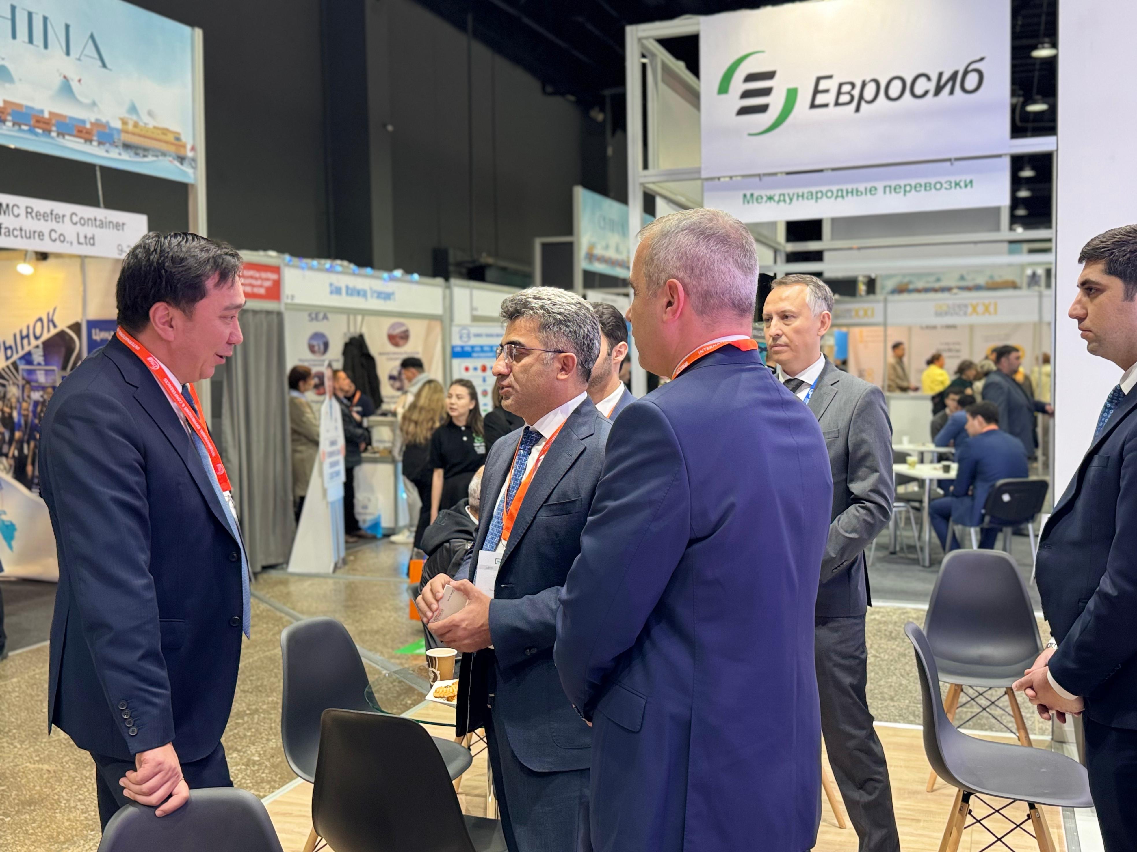 Stendi Qazaxıstanın nəqliyyat nazirinin müavini Maksat Kaliakparov da ziyarət edib. Ziyarətçilərə Azərbaycanın tranzit potensialı, əlverişli coğrafi mövqeyi və müasir dəmir yolu infrastrukturunun inkişafı barədə geniş məlumat verilib. Bildirilib ki, Azərbaycan Avropa ilə Asiya arasında yükdaşımaların təmin olunmasında strateji rol oynayır. Ölkə ərazisindən keçən əsas beynəlxalq marşrutlar sayəsində həmçinin Bakı Beynəlxalq Dəniz Limanından istifadə olunmaqla multimodal daşımalar həyata keçirilir.