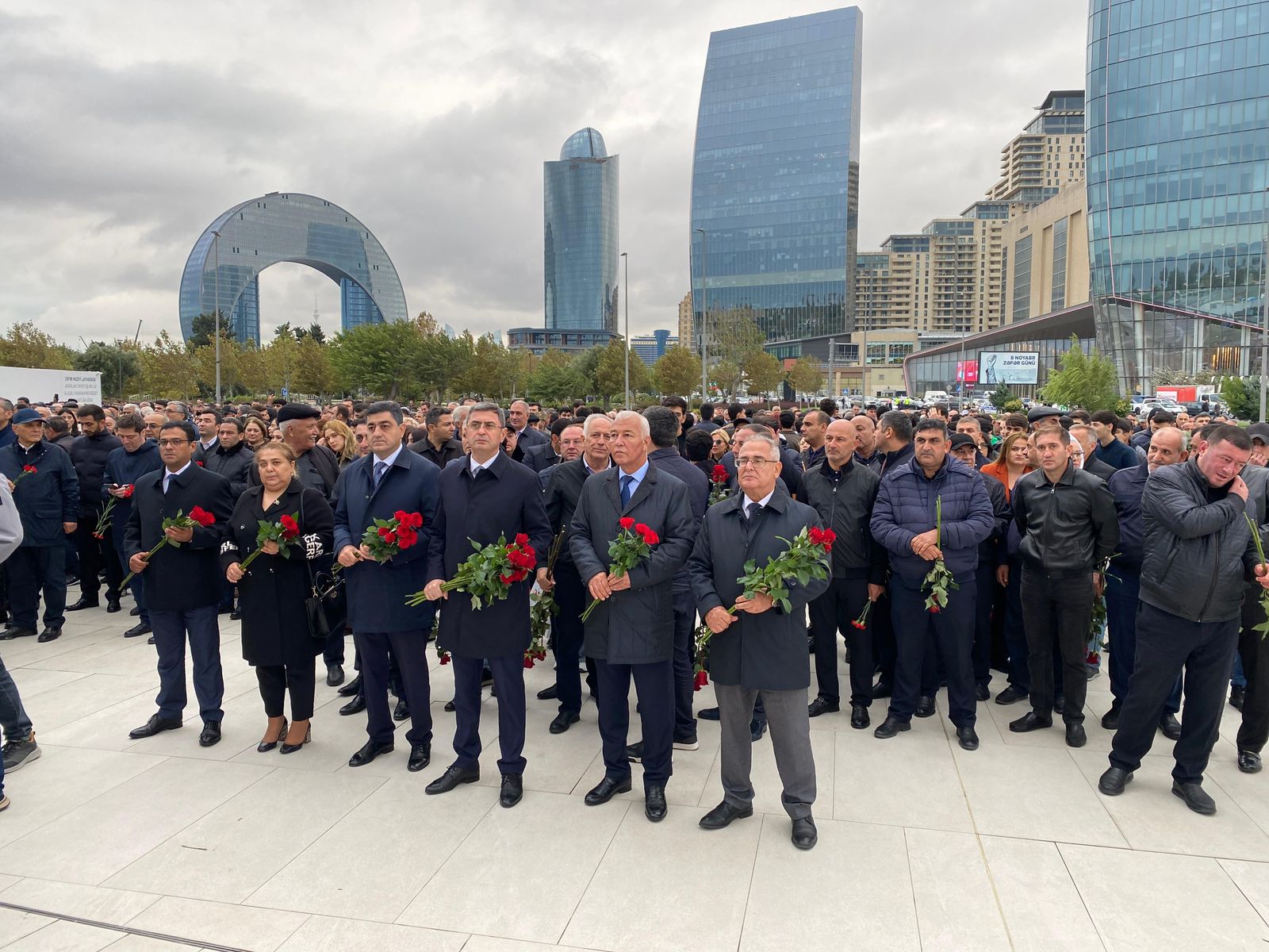 Daha sonra Xəzər Rayon İcra Hakimiyyəti tərəfindən şəhidlərin xatirəsinə ehsan süfrəsi təşkil olunub.