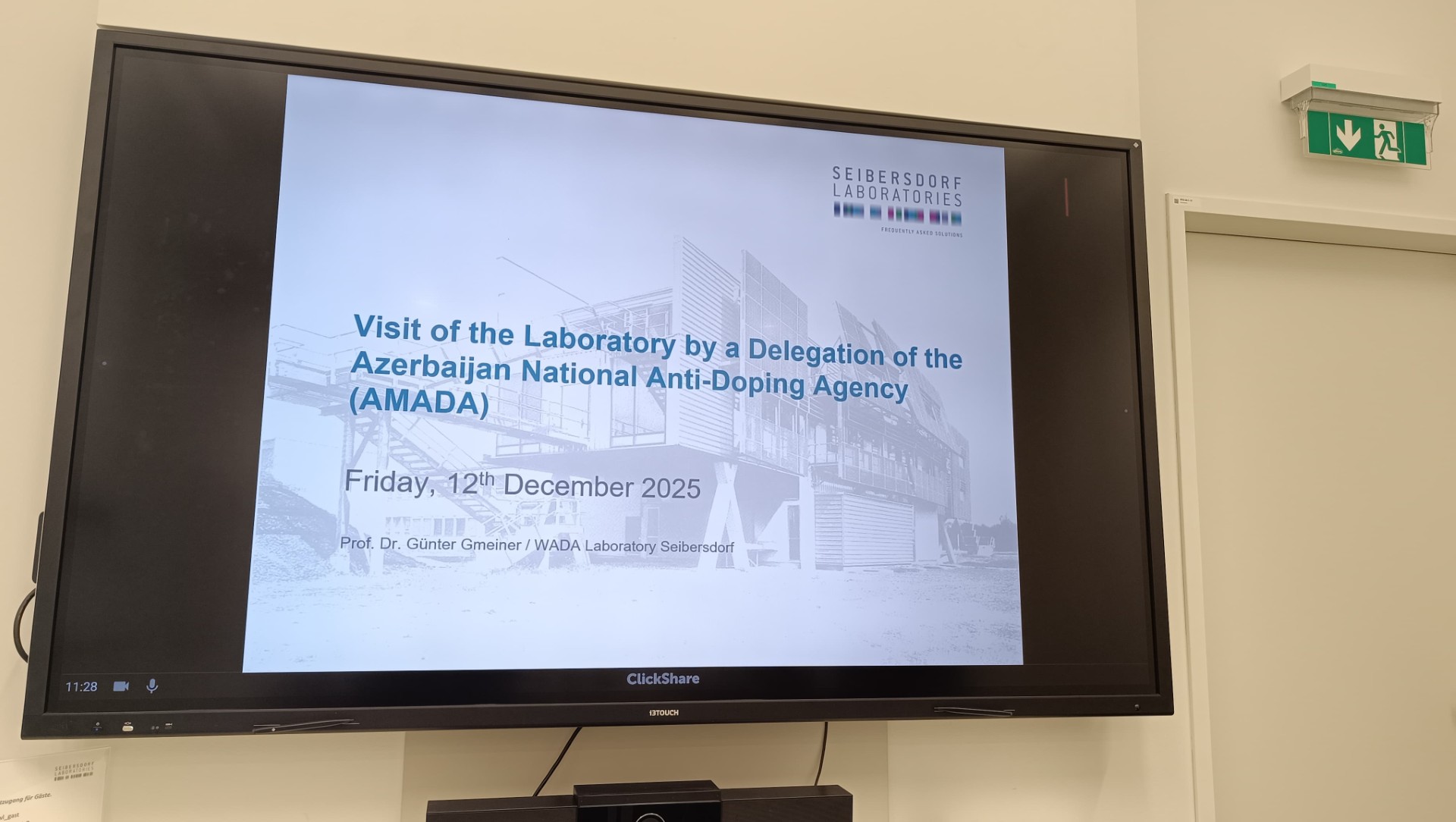 Sonra AMADA nümayəndə heyəti Zaybersdorfda yerləşən, WADA tərəfindən akkreditə olunmuş Dopinq Nəzarəti Laboratoriyasında olub. Laboratoriyanın direktoru, professor Günter Gmayner qlobal antidopinq sistemində laboratoriyanın rolunu izah edib və dopinq nəzarətində tətbiq olunan müasir elmi və analitik metodlar barədə məlumat verib.