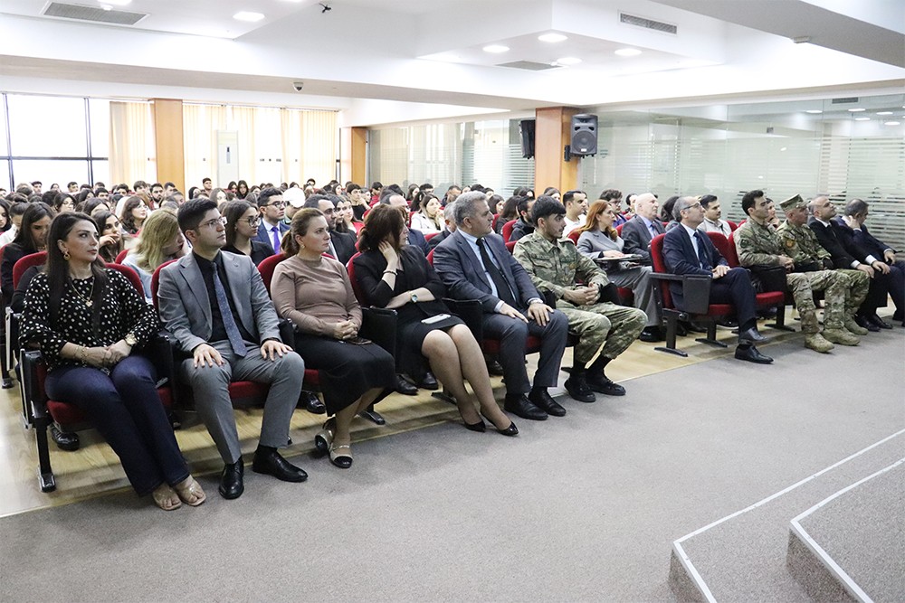 Universitetin elmi işlər üzrə prorektoru Yusif Qasımov tədbirdə açılış nitqi ilə çıxış edərək, Azərbaycanın Qarabağ Zəfərinin böyük geosiyasi hadisə olduğunu vurğulayıb. Prorektor bildirib ki, bu möhtəşəm Zəfər ölkədə illər boyu aparılmış ardıcıl iqtisadi siyasətin, ordu quruculuğu sahəsində atılan qətiyyətli addımların, ölkə başçısı, Müzəffər Ali Baş Komandan İlham Əliyevin diplomatik məharətinin, prinsipial mövqeyinin, sərkərdəliyinin, Azərbaycan əsgərinin igidliyinin, andına, dövlətinə və xalqına sədaqətinin məntiqi nəticəsidir. Tarixi Zəfərin qazanılmasında Azərbaycan xalqının birliyi, Vətən sevgisi, həmçinin genetik yaddaşı da mühüm rol oynayıb. Azərbaycanın beynəlxalq hüquqa əsaslanan ədalətli mübarizəsi bu gün regionda sülhün və sabitliyin əsas təminatına çevrilib