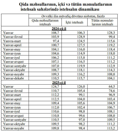 Ötən illə müqayisədə Azərbaycanda tütün məmulatlarının istehsalında 13,2 faiz, içki istehsalında isə 1,6 faiz azalma qeydə alınıb.