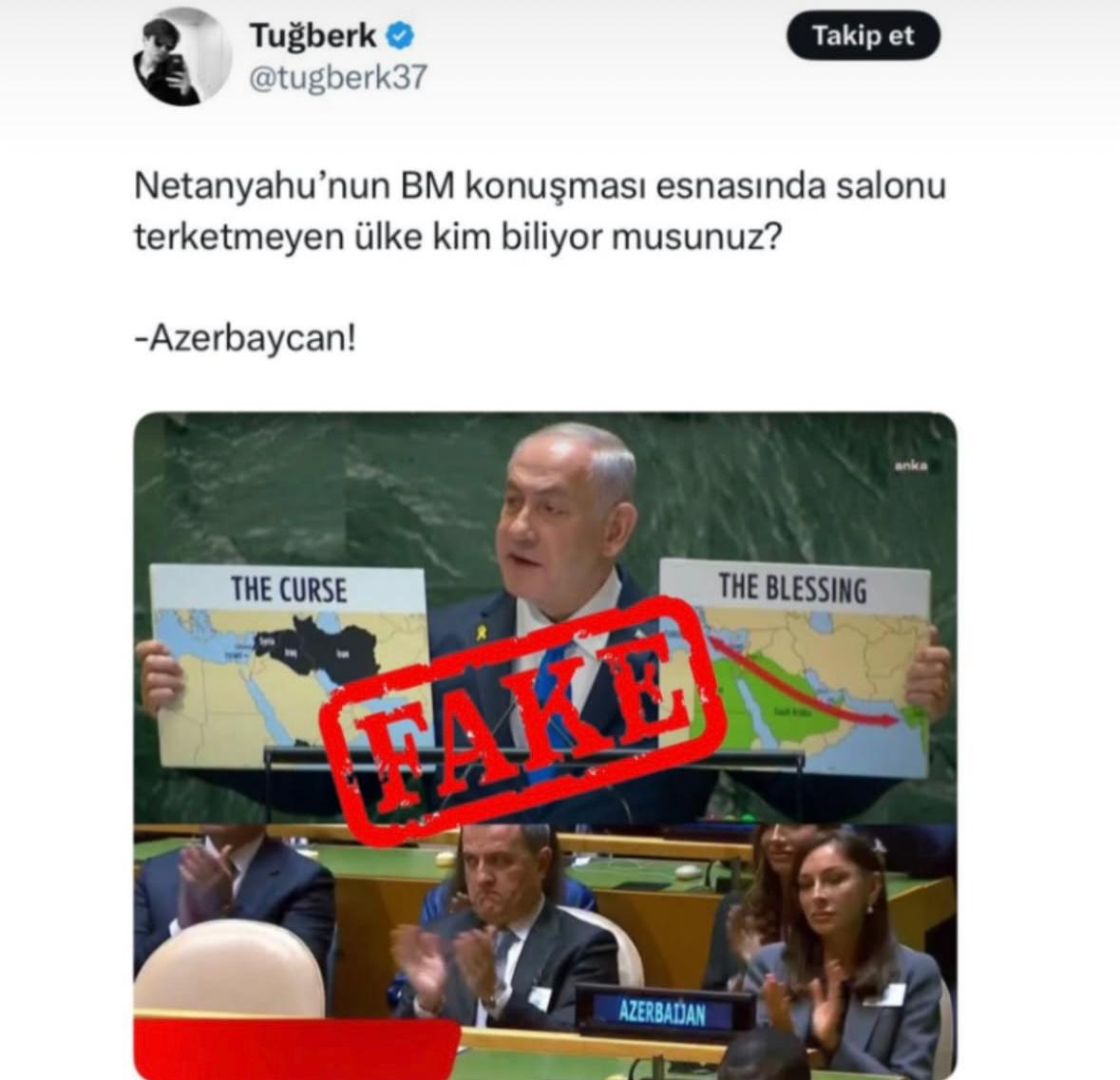 Təəccüblüsü odur ki, yenidən daha bir baş verməmiş məsələyə dair – BMT-də bütün dünyanın gözü qarşısında yaşanmış hadisə Türkiyə mediasında təhrif edildi. Türkiyənin bəzi media və sosial şəbəkə seqmentlərində yayılan məlumatda bir sıra ölkələr tərəfindən BMT Baş Assambleyasında çıxışı boykot edilən İsrail Baş naziri Netanyahunu dinləyənlər arasında Azərbaycanın rəsmi nümayəndə heyətinin olduğunu iddia edən saxta foto və xəbər yayıldı. Halbuki, BMT-nin müzakirələri canlı yayımlanır, BMT-nin saytında da bunlara baxmaq mümkündür. Hər kəs izləyə bilər. Eyni zamanda BMT sessiyasında bütün dünya mediası iştirak edib, yalnız Türkiyə mediası yox. Orada Azərbaycan da böyük bir media heyəti ilə təmsil olunub. Azərbaycanın aparıcı agentlikləri və televiziya kanalları Prezidentin səfərini Nyu-Yorkdan işıqlandırıblar. Belə açıq bir tədbirdə, hər kəsin gözü qarşısında necə olur ki, bu cür saxta xəbərlər hazırlanıb yayıla bilir? Hər kəs Netanyahu çıxış edəndə zalda Azərbaycan nümayəndə heyətinin olmadığını görüb. Bu şəkilləri montaj edib saxta foto ilə xəbər yaymaq Türkiyə mediasına nə üstünlük qazandıra bilər?