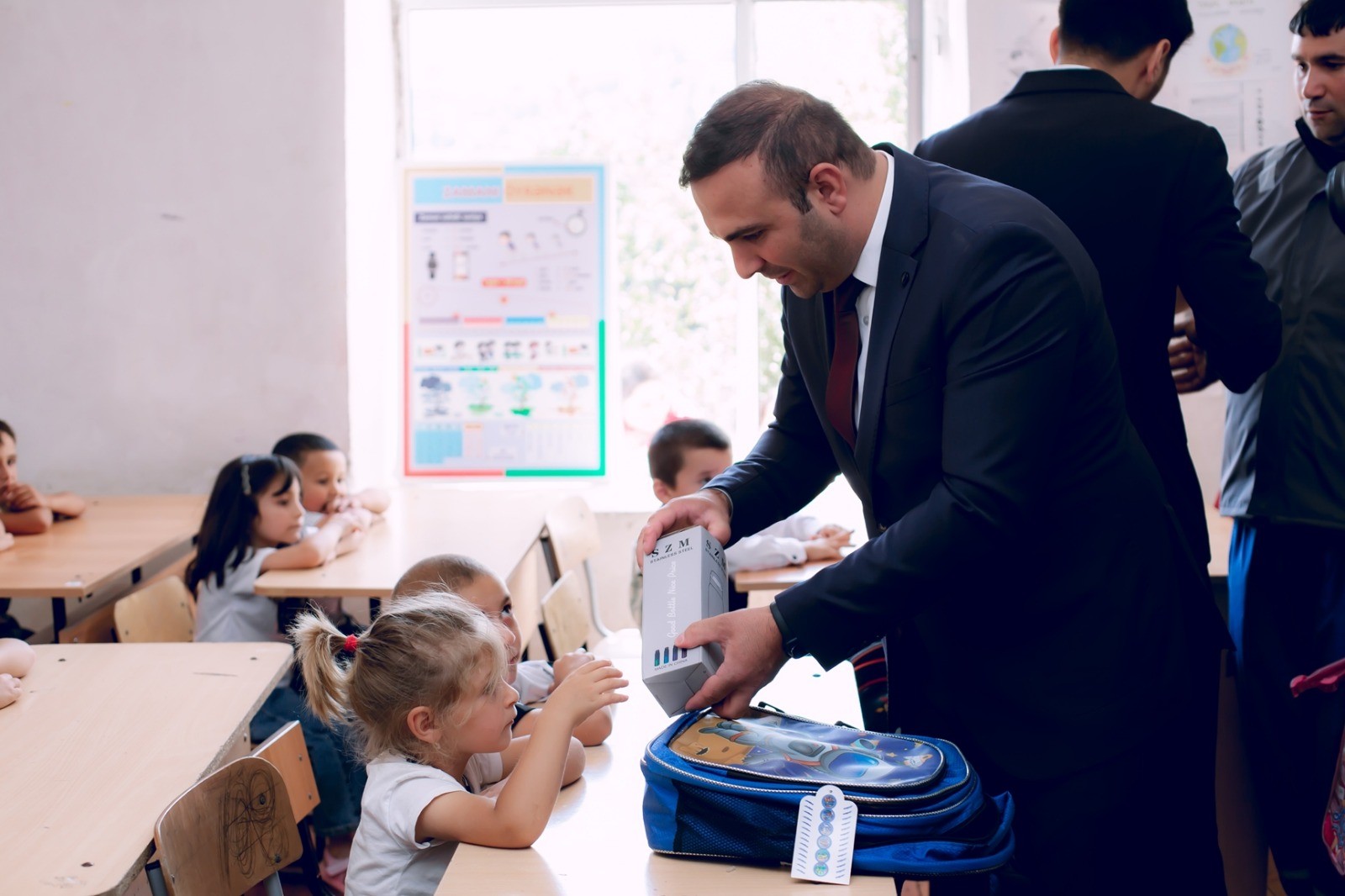 Şagirdlərə şəxsən təqdim olunan hədiyyələr valideynlərin və uşaqların sevincinə səbəb olub.