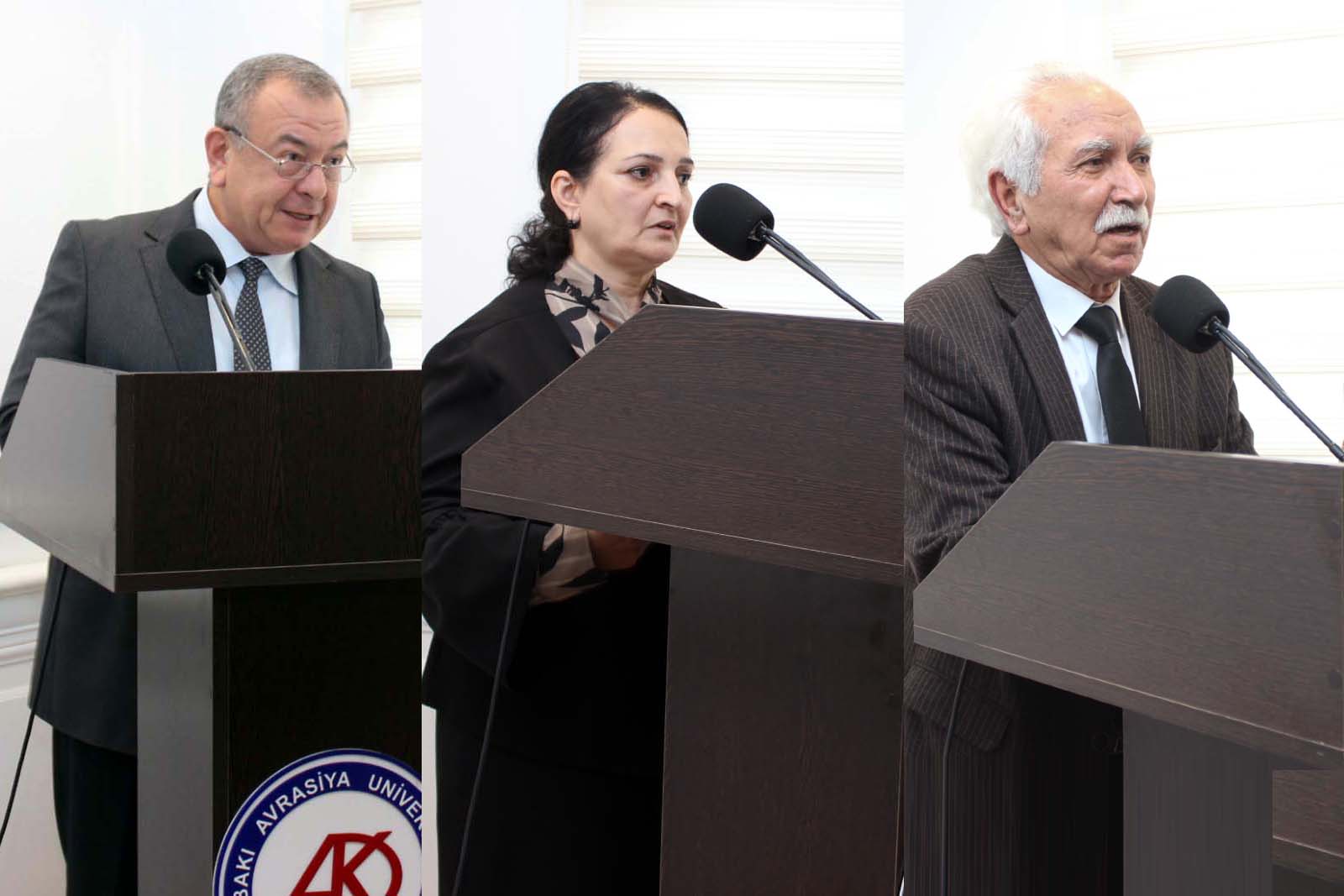 Tədbirdə həmçinin şəhid Vətən Müharibəsi Qəhrəmanı Azad Hümbətovun atası Arif Hümbətov, BAAU-nun “Regionşünaslıq və iqtisadiyyat” fakültəsinin dekanı, dosent Mütəllim Rəhimov, Ümumi fənlər kafedrasının dosenti Əjdər Yunusov, Sosial və siyasi fənlər kafedrasının professoru Məmməd Cəfərli, Nəzəri dilçilik və türk dilləri kafedrasının dosenti, filologiya üzrə fəlsəfə doktoru İlhamə Şıxıyeva, eləcə də qazilər Balamirzə Sadayev və Həsən Həsənov çıxış ediblər.