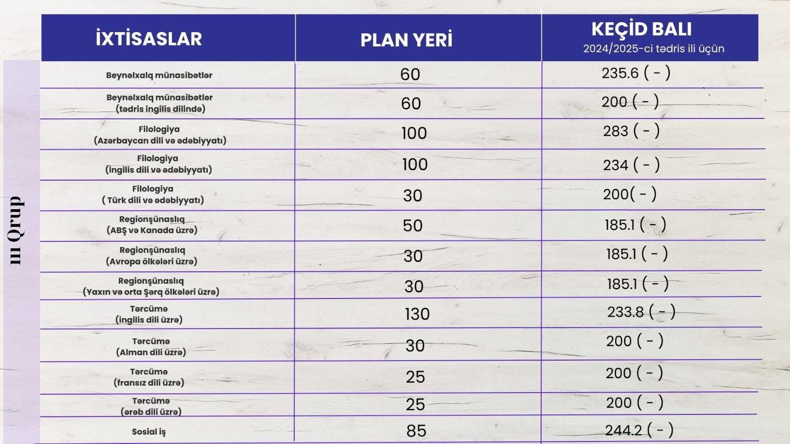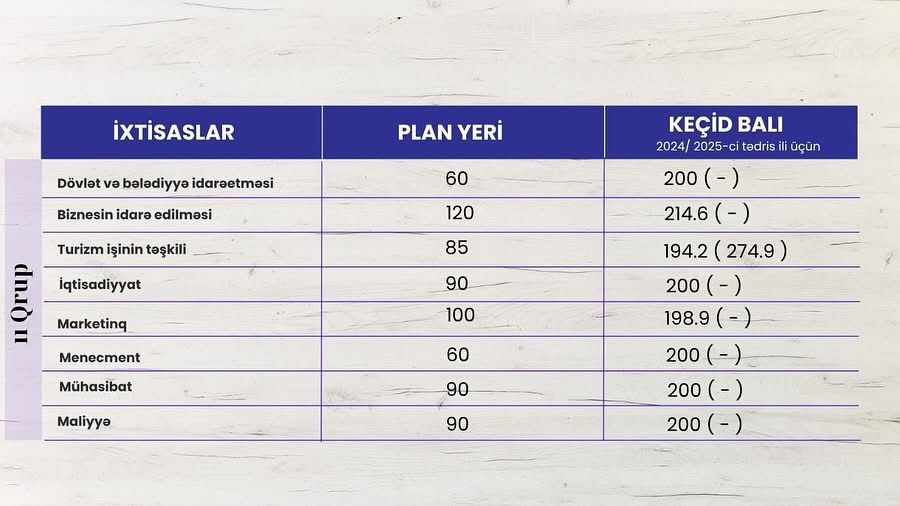 Qəbul planı və ixtisaslar üzrə keçid balları ilə universitetin sosial media səhifələrində tanış olmaq mümkündür.