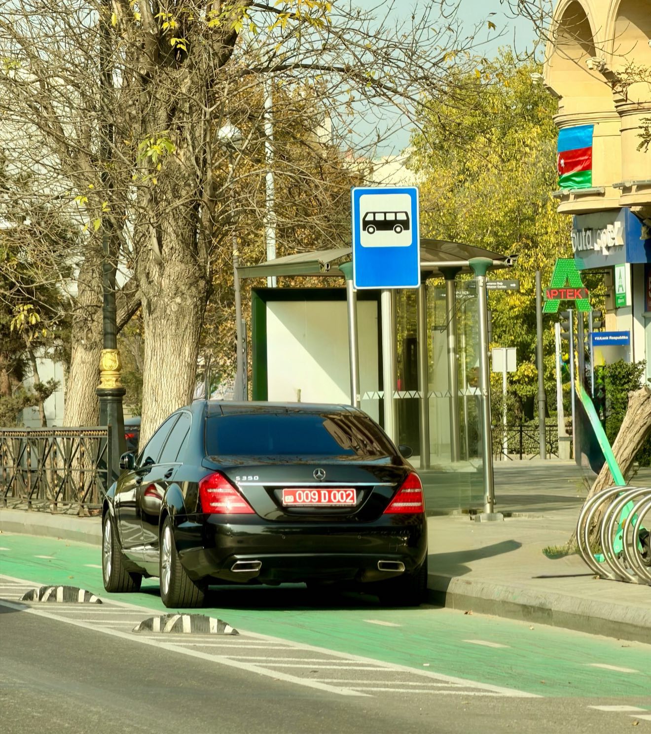 Bakıda səfirlik avtomobilinin avtobus dayanacağı və velosiped zolağında qaydaları pozmasına dair foto yayılıb.