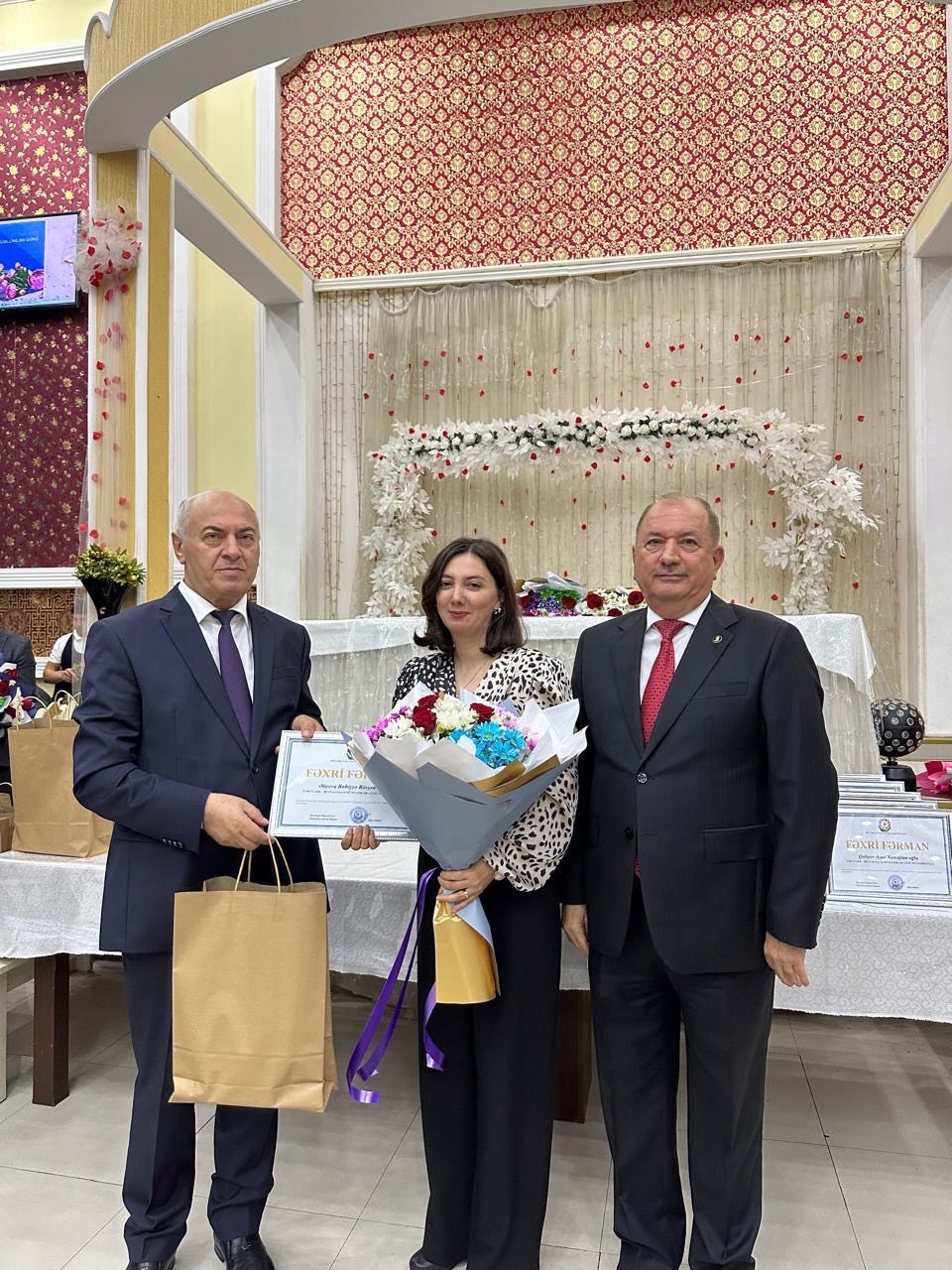 Beyləqan RİH başçısı daha sonra peşə bayramlarına görə təhsil işçisi olan şəhid ailələrinə gül və hədiyyələr, rayon üzrə bir qrup təhsil işçisinə isə Rayon İcra Hakimiyyətinin Fəxri Fərmanı və hədiyyələri təqdim edib.