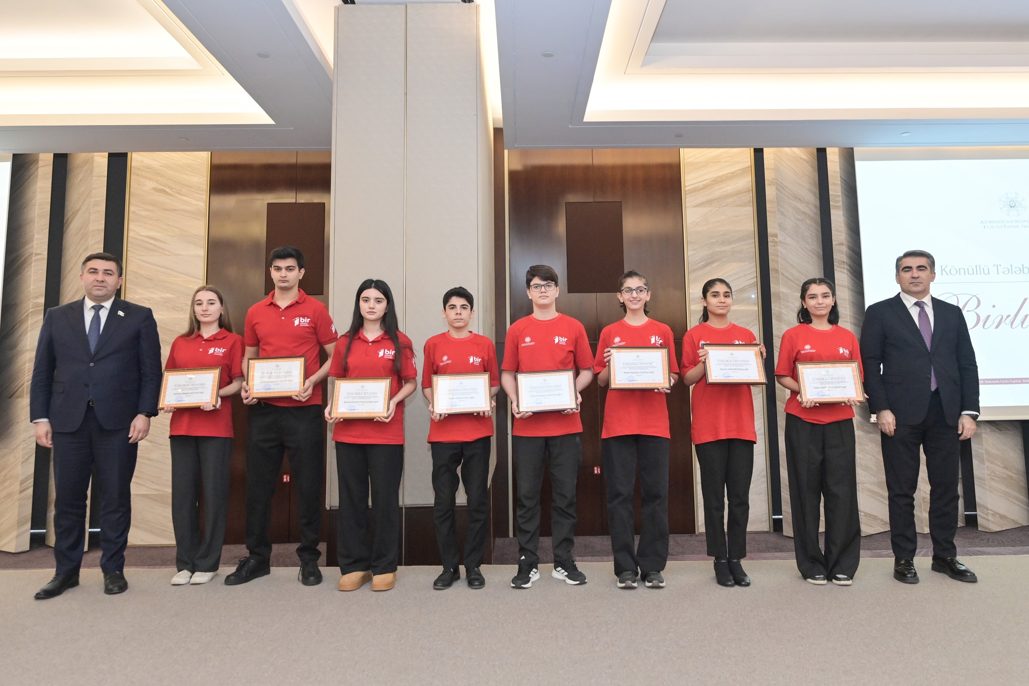 Tədbir çərçivəsində “BİRlikdə yazılan hekayə” videoçarx nümayişindən sonra “Bir Könüllü” Tələbələrin Əməkdaşlığı İctimai Birliyinin fəaliyyətində fəallığı və təşəbbüskarlığı ilə fərqlənmiş 30 gənc könüllü mükafatlandırılıb.