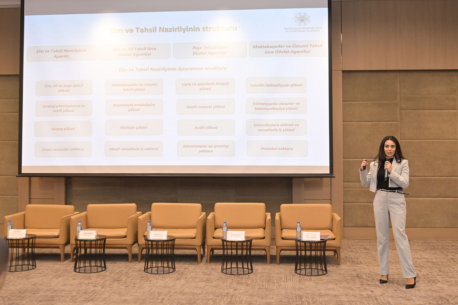 Daha sonra təqdimatla çıxış edən Elm və Təhsil Nazirliyinin Strateji planlaşdırma və təhlil şöbəsinin müdiri Leyla Xəlilova Rzazadə “Azərbaycan Respublikasında 2022–2026-cı illərdə sosial-iqtisadi inkişaf strategiyası” çərçivəsində elm və təhsil sahəsində görülən işlər, əldə olunan nailiyyətlər və qarşıdakı dövr üçün müəyyənləşdirilən əsas hədəflər barədə ətraflı məlumat verib. Şöbə müdiri elm və təhsil sahəsində aparılan proseslərdə ictimai dəstəyin və düzgün maarifləndirmənin önəmini vurğulayıb.
