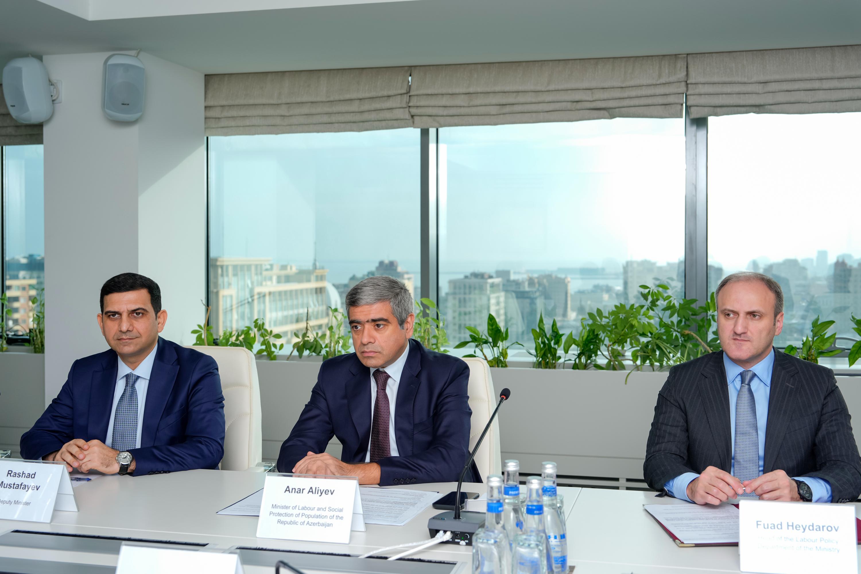 Bu sənəd əsasında nazirliyin müxtəlif fəaliyyət sahələrində, xüsusilə insan kapitalının inkişafı, layiqli əmək şəraitinin təşviqi və sosial müdafiə sisteminin gücləndirilməsi istiqamətlərində görüləcək birgə işlərə dair fikir mübadiləsi aparılıb.