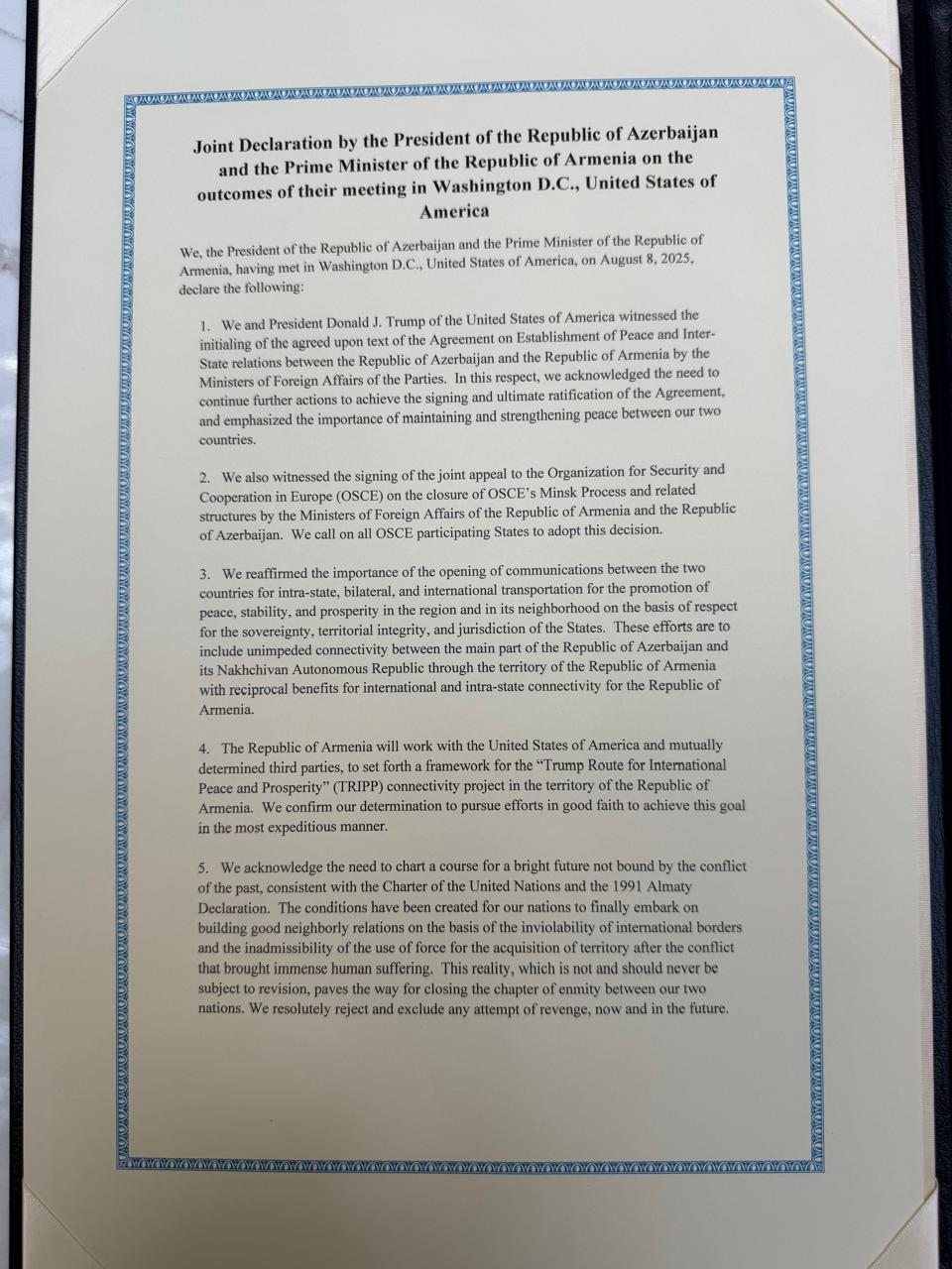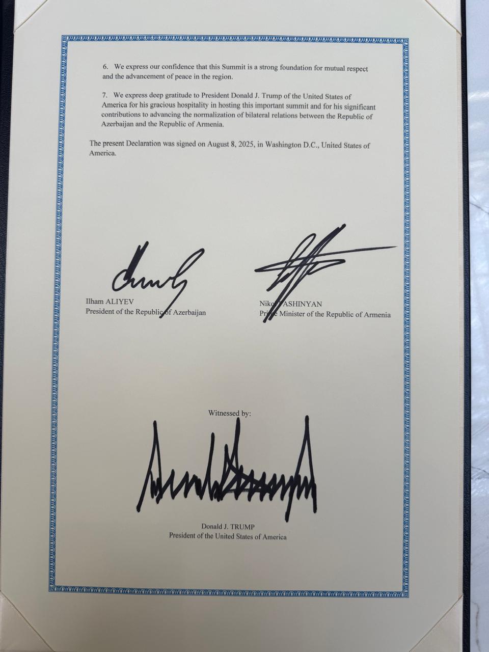Bu Bəyannamə 8 avqust 2025-ci il tarixində Amerika Birləşmiş Ştatlarının Vaşinqton şəhərində imzalanmışdır”.