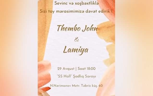 İkiqat Paralimpiya çempionumuz Lamiyə Vəliyevanın Cənubi Afrika Respublikasından olan atlet Thembo Monarenqlə toyudur.