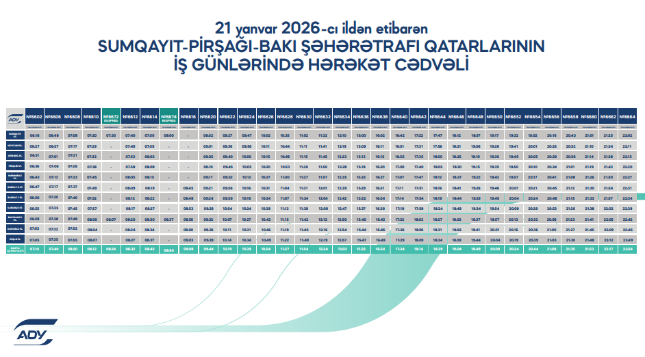 Şənbə və bazar günlərində şəhərətrafı qatarların hərəkət cədvəli dəyişiklik edilmədən qüvvədə qalacaq.