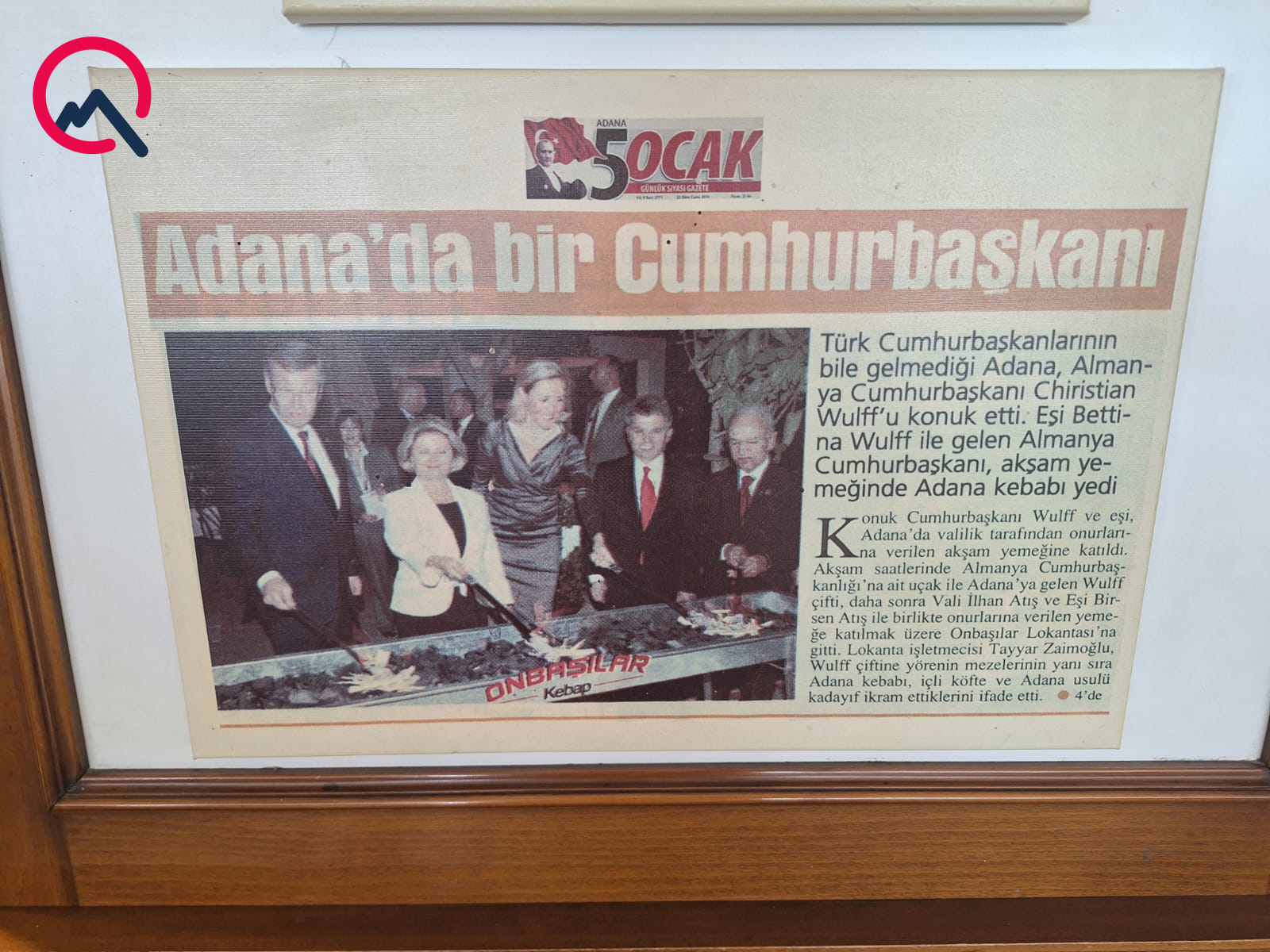 Türk Prezidentlərinin belə gəlmədiyi Adana Almaniya Prezidenti Kristian Vulffu və xanımı Bettina Vulffu qonaq etdi. Almaniyanın ozamankı prezidentinə burada, məhz “Onbaşılar” restoranında Adana kababı və bölgənin mətbəxindən ləziz təamlar təqdim olunur.
