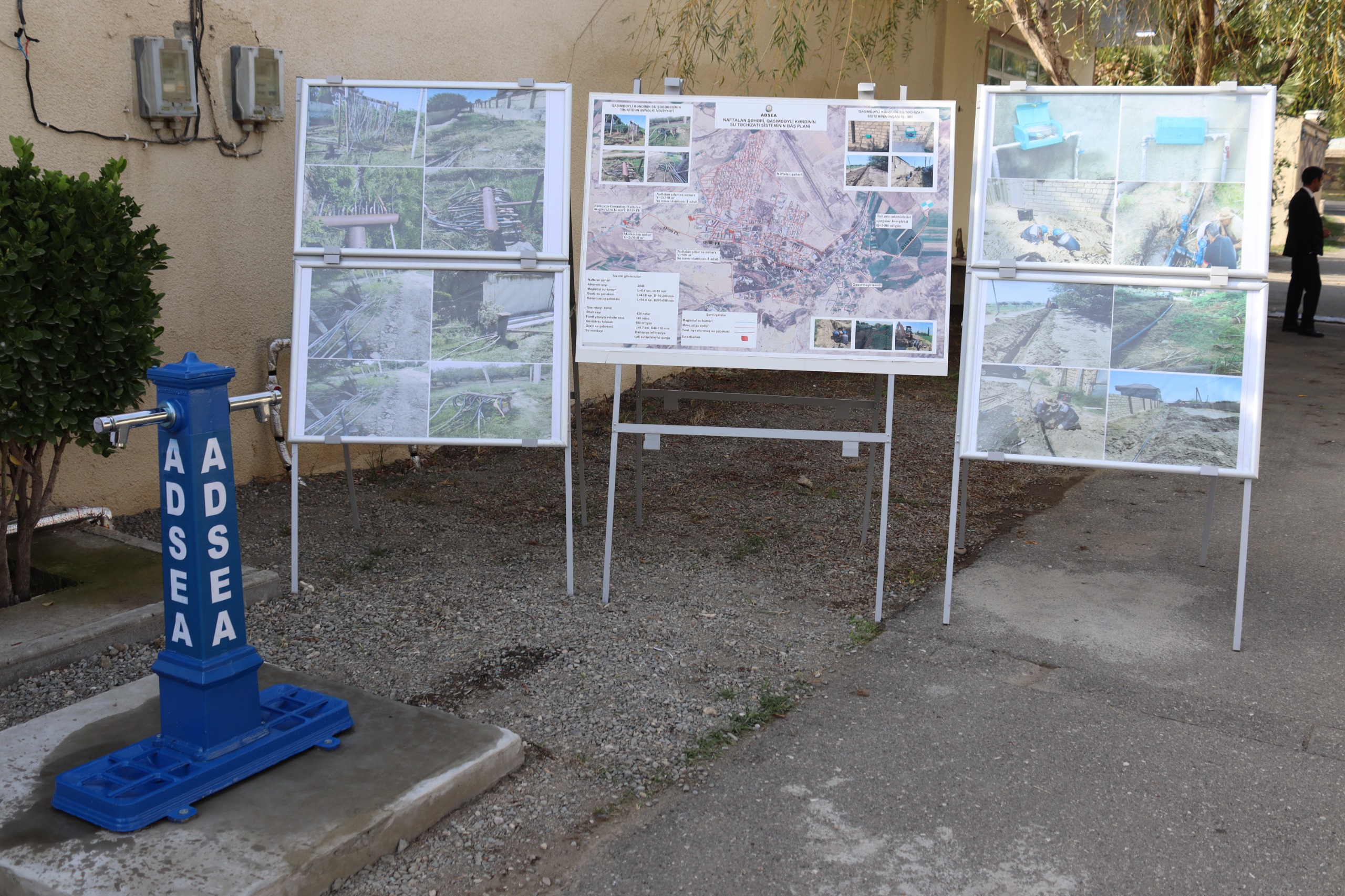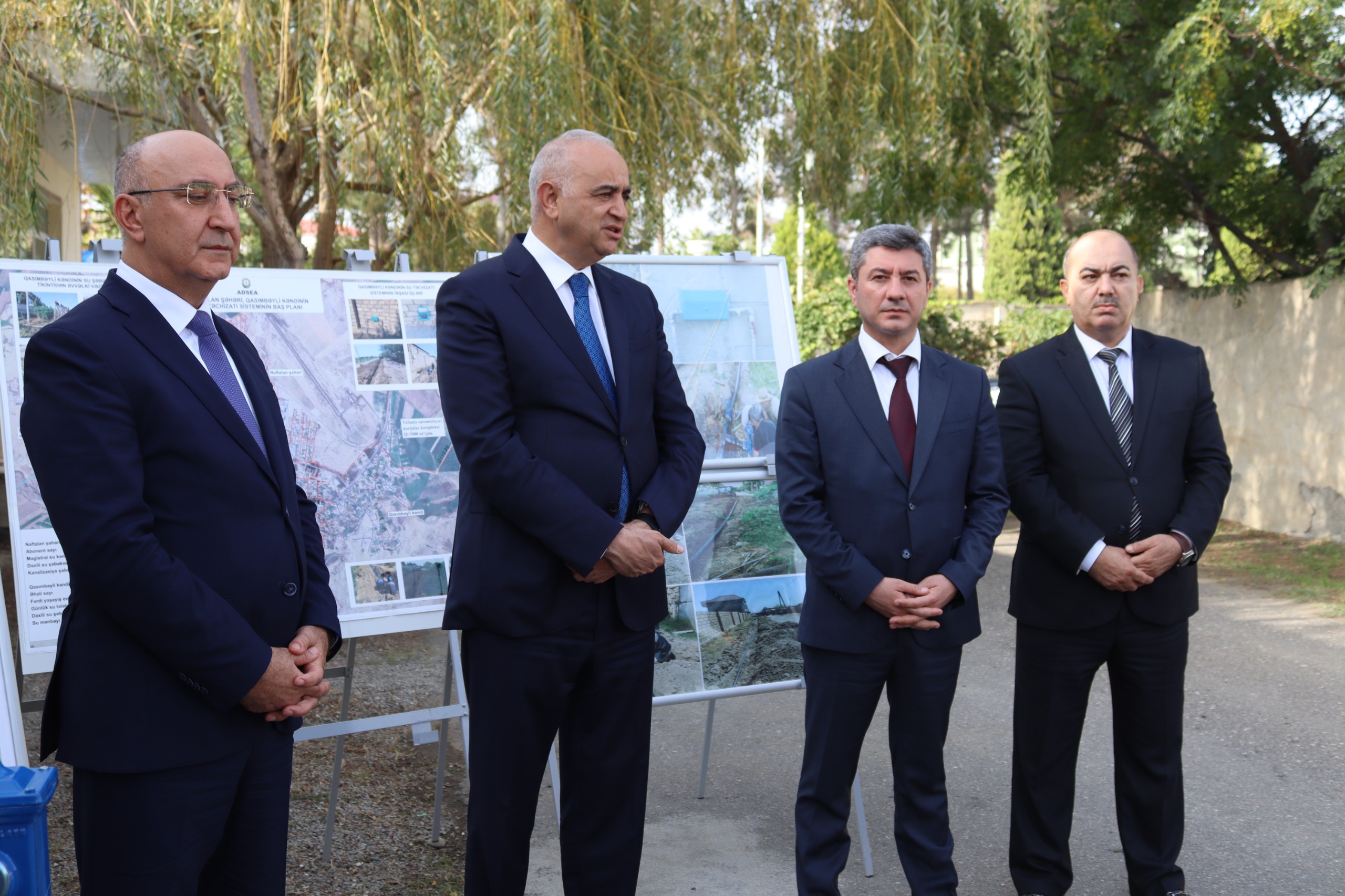 Çıxışlar zamanı bildirilib ki, Naftalan şəhərinin Qasımbəyli kəndində əhalinin mərkəzləşdirilmiş su təchizatı sisteminin yaradılması məqsədilə Naftalan şəhərinin mövcud su təchizatı sisteminin imkanlarından istifadə etməklə kənddaxili şəbəkə sistemi inşa edilib. Bu məqsədlə 40-100 mm diametrli, 8.7 km su xətti çəkilib və 140 abonentə evə birləşməsi verilib. Əhaliyə verilən suyun dəqiq uçotunun aparılması və sudan qənaətlə istifadə məqsədi ilə hər bir abonent su sayğacları ilə təchiz edilib. Əlavə olaraq qeyd olunub ki, Qasımbəyli kəndinin əhalisi 438 nəfər təşkil edir ki, günlük suya olan 100 kub metr tələbatı yeni yaradılmış su təchizatı şəbəkəsi ilə tam təmin etmək mümkün olacaq.