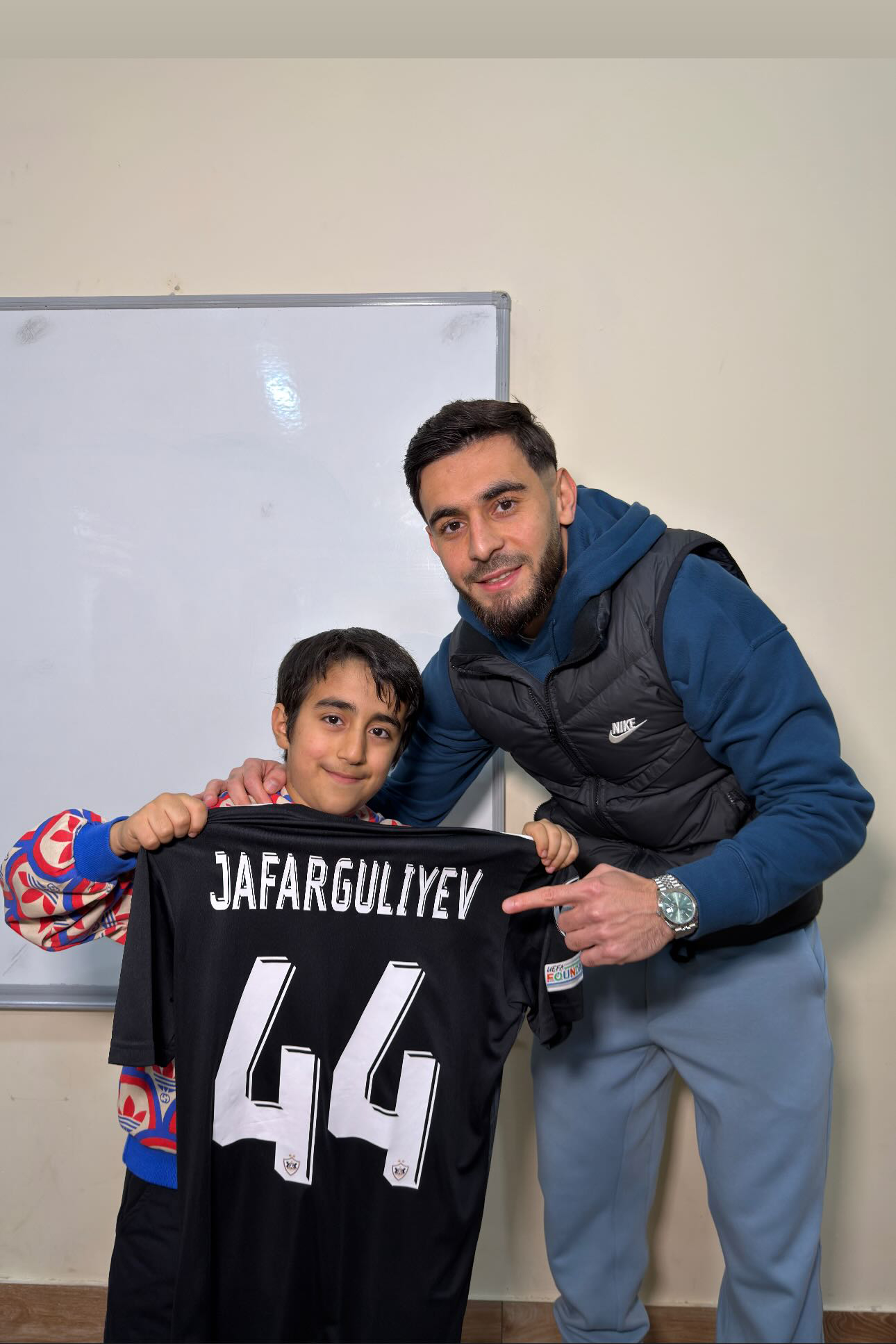 Qeyd edək ki, E. Cəfərquliyev balaca Əkbərə imzalı formasını da hədiyyə edib.