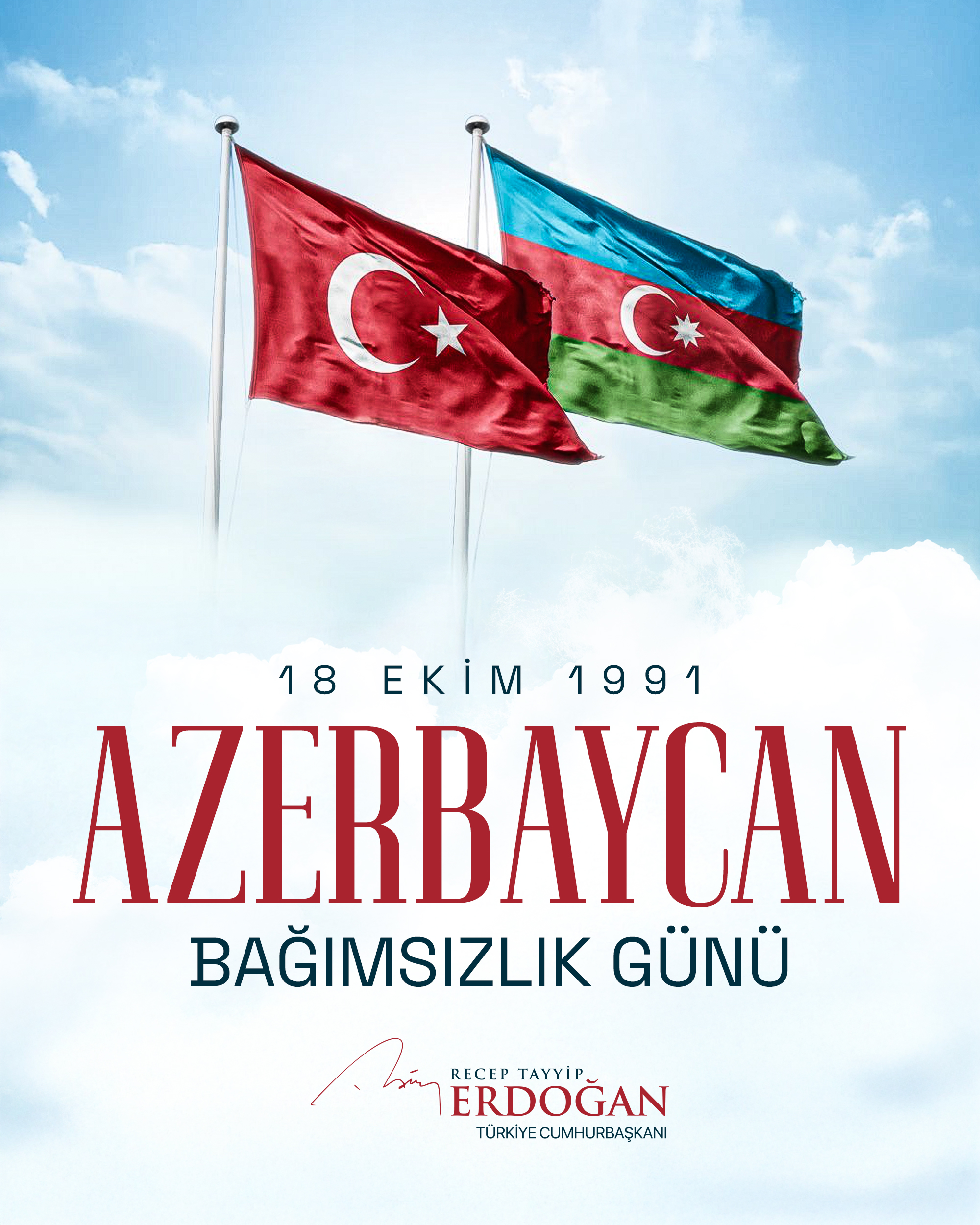 Türkiyə Prezidenti Rəcəb Tayyib Ərdoğan Azərbaycanın 18 oktyabr – Müstəqilliyin Bərpası Günü münasibətilə təbrik edib.