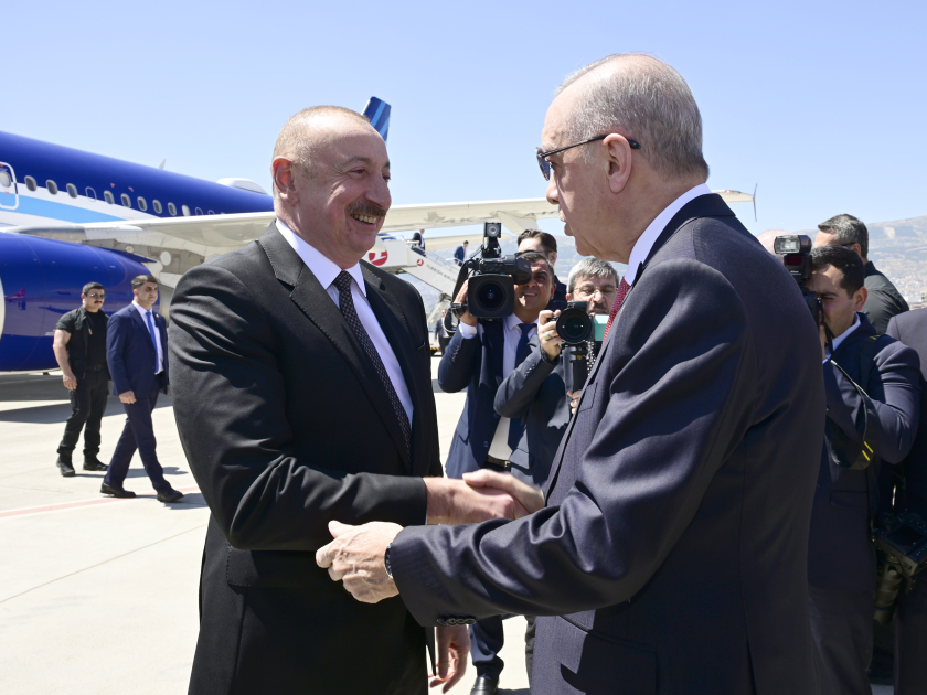 Dövlət başçısını Türkiyə Prezidenti Rəcəb Tayyib Ərdoğan qarşılayıb.