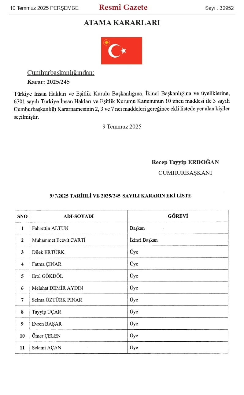 F. Altun isə Türkiyə İnsan Haqları Qurumuna (TİHEK) rəhbər təyin olunub.