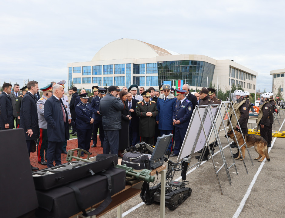 Sonra mərasim iştirakçıları Fövqəladə Hallar Nazirliyinin Akademiyasında Nazirliyin xüsusi texnikalarından ibarət sərgi ilə tanış olublar. Sərgidə Azərbaycan FHN-in strukturuna daxil olan qurumların istifadəsində olan ən müasir texnika və avadanlıqlar nümayiş olunub.