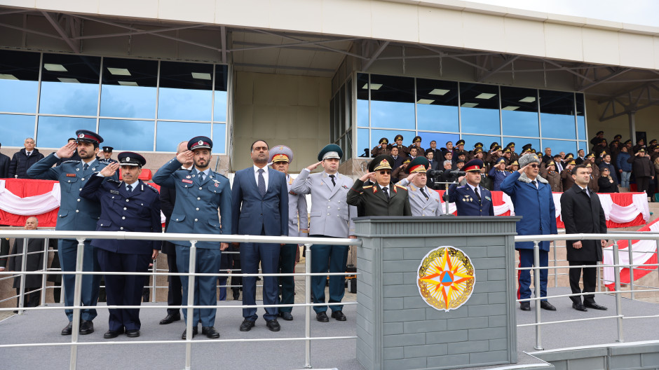 Dövlət Himni səsləndirildikdən sonra Fövqəladə Hallar Nazirliyinin şəxsi heyətinin təntənəli keçidi olub.