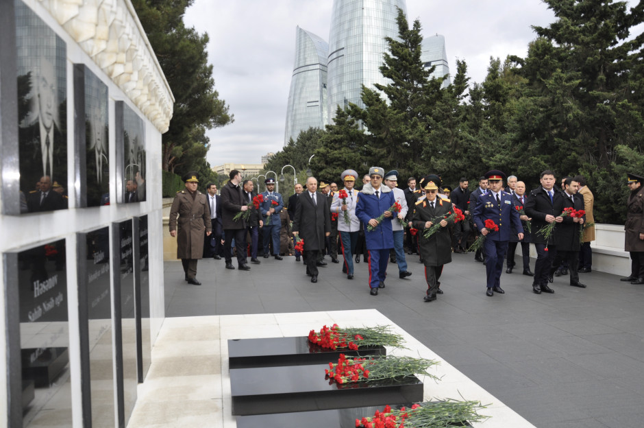 Mərasim FHN Akademiyasının akt zalında davam etdirilib. Dövlət Himni səsləndirildikdən sonra ölkəmizin müstəqilliyi, ərazi bütövlüyü və suverenliyi uğrunda canlarından keçmiş qəhrəman şəhidlərimizin əziz xatirəsi bir dəqiqəlik sükutla yad edilib.