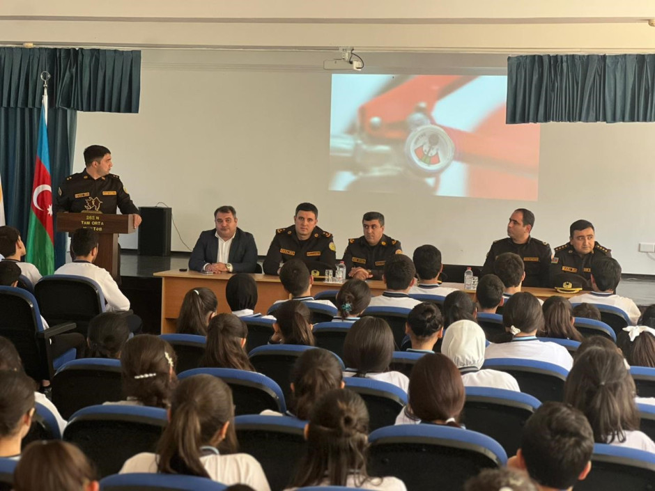 Bildirilib ki, nazirliyin Dövlət Yanğın Nəzarəti, Kiçikhəcmli Gəmilərə Nəzarət və Sularda Xilasetmə Dövlət xidmətlərinin mütəxəssislərinin də iştirakı ilə Bakı Regional Mərkəzi (RM) tərəfindən Bakı şəhərinin Xəzər rayon 262, Nizami rayon 312, Binəqədi rayon 246, Pirallahı rayon 186 və 243 nömrəli orta məktəblərində, Sumqayıt RM tərəfindən Abşeron rayonunda yerləşən Hökməli Ailə Sağlamlıq Mərkəzində, Cənub RM tərəfindən Cəlilabad Dövlət Peşə Təhsil Mərkəzində və Lənkəran Dövlət Universitetinin nəzdində Sosial və Aqrar-Texnoloji Kollecində, Gəncə RM tərəfindən Ağstafa rayonu Eynallı kənd tam orta məktəbində, Şimal-qərb RM tərəfindən Şəki rayonunun Birinci Biləcik kənd və İkinci Biləcik kənd, Şamaxı rayonunun Kərkənc kənd və Göylər kənd 2 nömrəli tam orta məktəblərində, eləcə də Şəki rayonunun Baş Zeyzid və Kiş kəndlərində, Qarabağ RM tərəfindən Ağdam rayonu 91 nömrəli və Tərtər rayon Seydimli kənd tam orta məktəblərində, Muğan RM tərəfindən Salyan regional “ASAN xidmət” mərkəzində və Salyan rayonu Ərəbqardaşbəyli kənd tam orta məktəbində, Aran RM tərəfindən Göyçay rayonu Bığır kənd 3 nömrəli və Ağdaş rayon Dəhnəxəlil kənd tam orta məktəblərində, Şimal RM tərəfindən Dövlət Sərhəd Xidmətinin “N” saylı hərbi hissəsində və Qusar rayon Uşaq-Gənclər İnkişaf Mərkəzində maarifləndirmə tədbiriləri keçirilib.