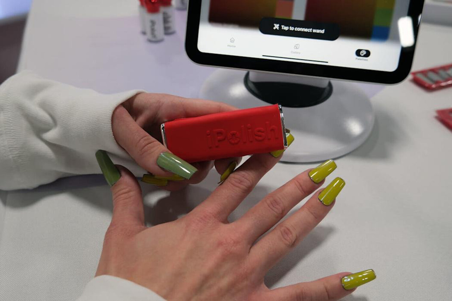 Sərgidə “iPolish” startapı elektrik impulsu ilə rəngini dəyişə bilən akril dırnaqları təqdim edib. Belə ki, yenidən rəngləməyə və ya salona getməyə ehtiyac yoxdur.