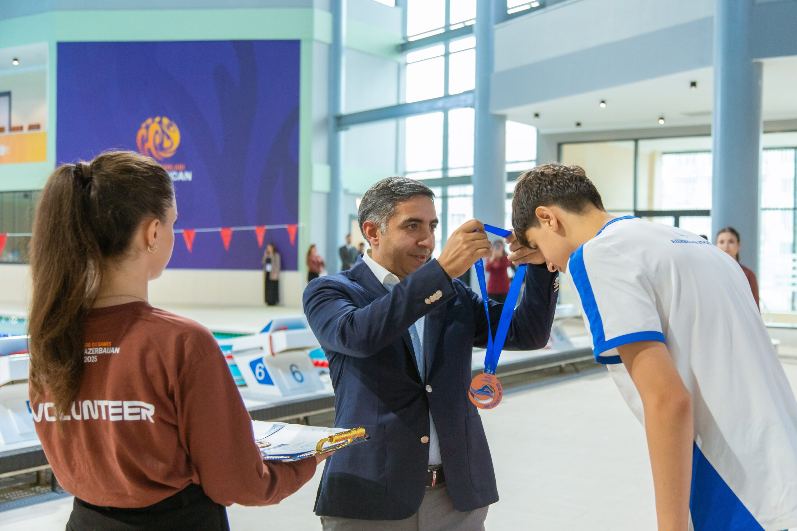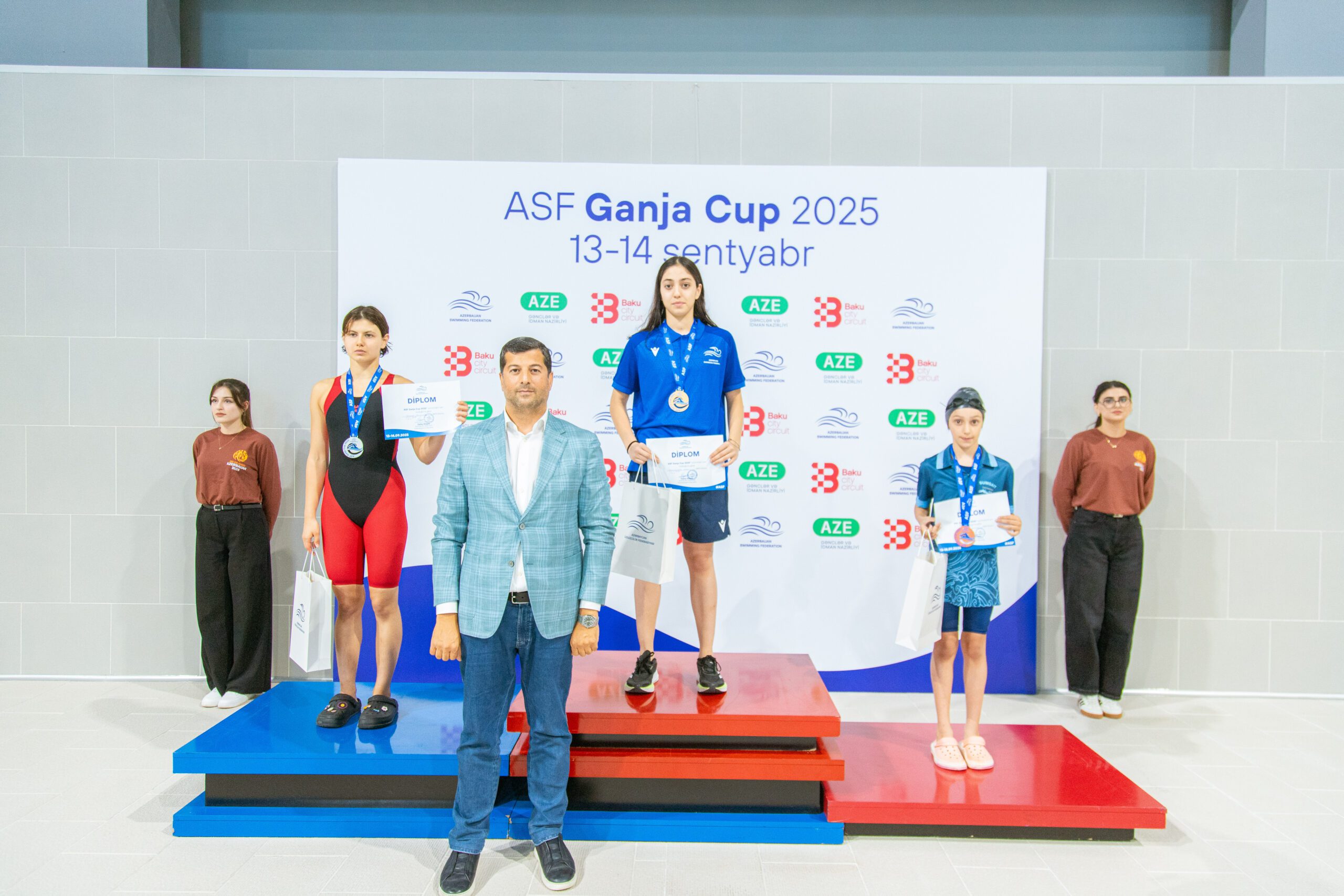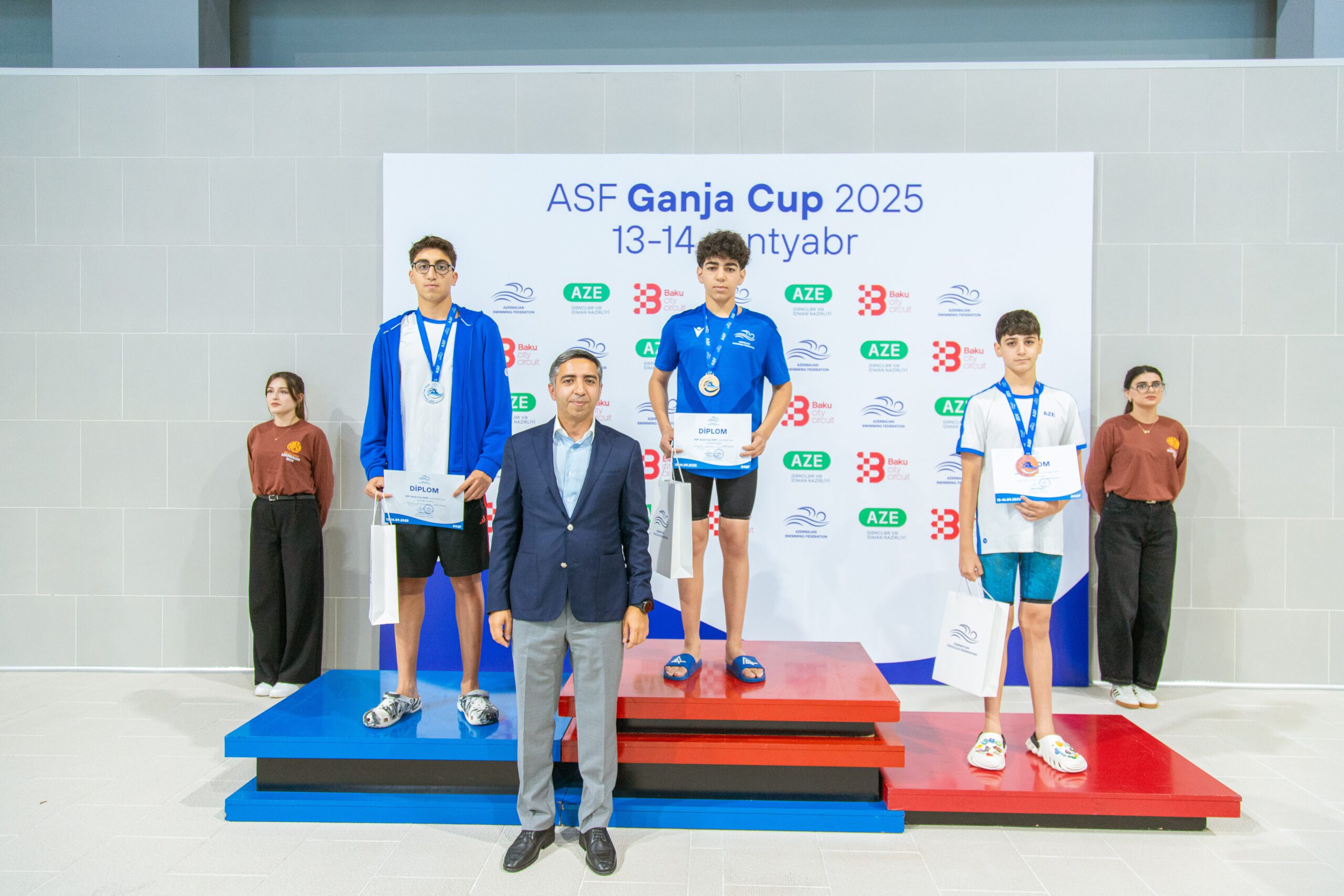 Mükafatları Azərbaycan Respublikasının gənclər və idman naziri Fərid Qayıbov, Azərbaycan Üzgüçülük Federasiyasının prezidenti Zaur Əliyev, federasiyanın vitse-prezidenti Xaliq İldırımzadə və federasiyanın İcraiyyə Komitəsinin üzvü Ruslan Ələkbərov təqdim ediblər.