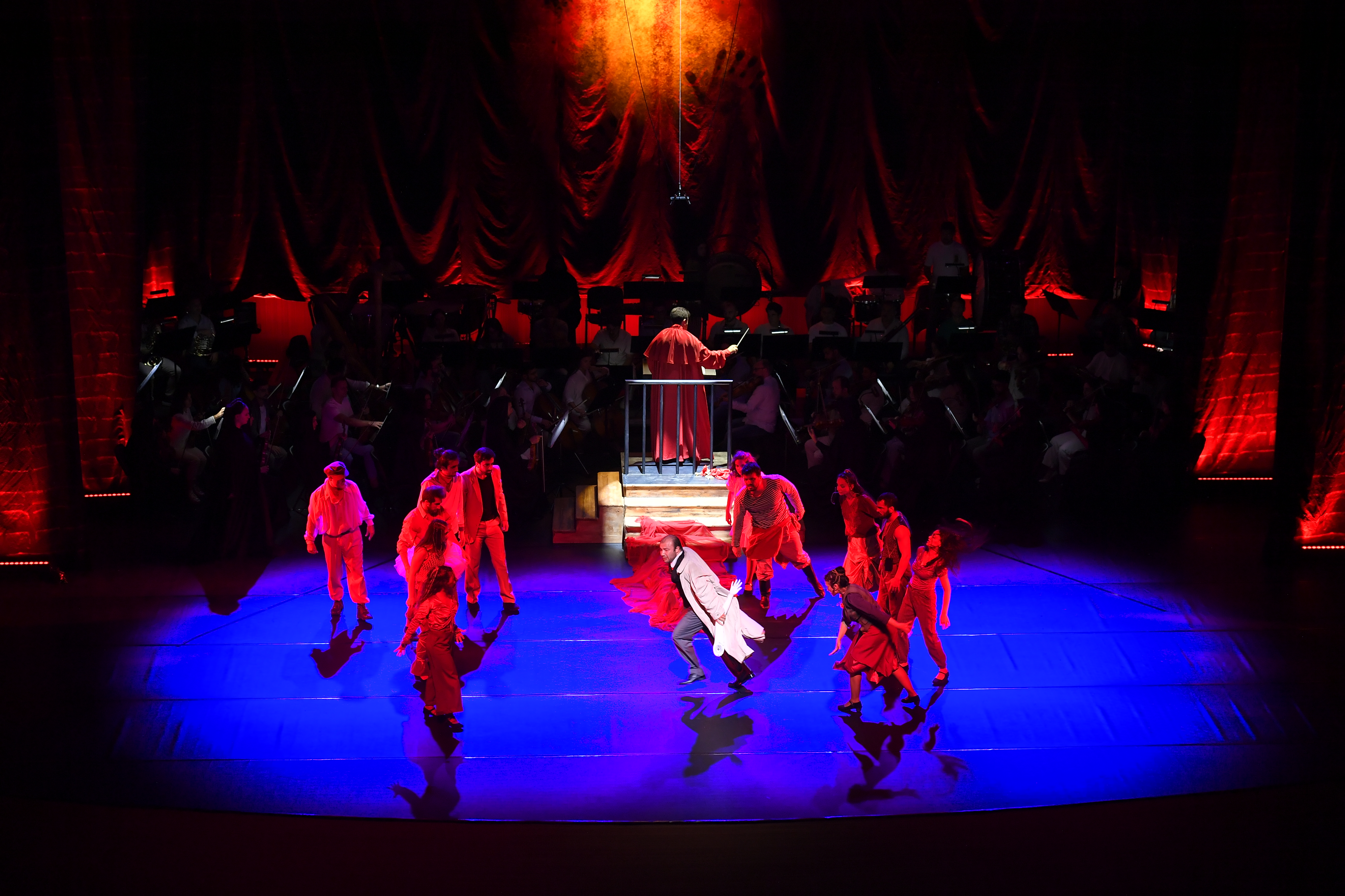Yeni quruluşda baş rolun ifaçısı və dirijor Prezident mükafatçısı, bir sıra beynəlxalq müsabiqələrin laureatı Mustafa Mehmandarovdur. Simfonik orkestrin musiqiçiləri tamaşada dirijorun idarəçiliyi ilə Pantomim Teatrının aktyorlarının arasına qarışaraq plastik düşüncələrin iştirakçısına çevrilirlər.