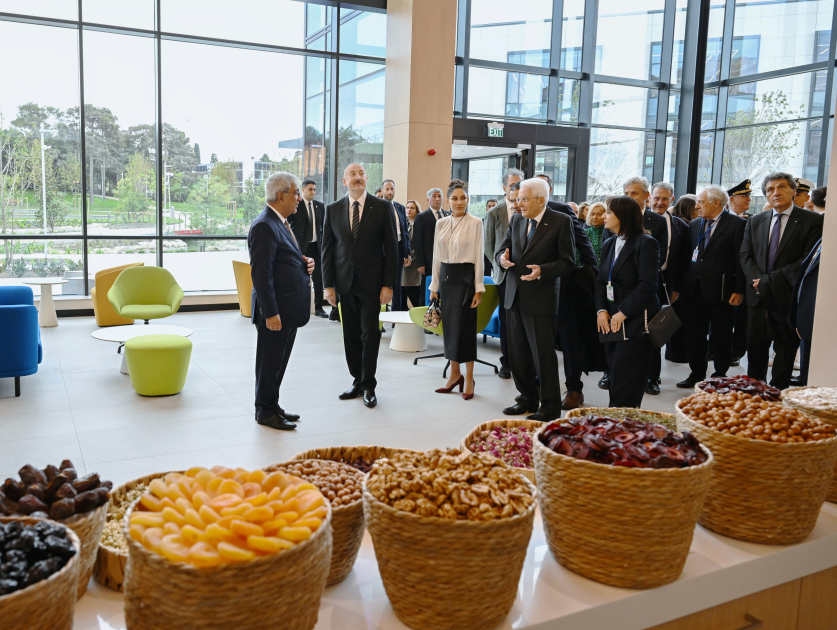 Azərbaycan Prezidenti İlham Əliyev, birinci xanım Mehriban Əliyeva və ölkəmizdə rəsmi səfərdə olan İtaliya Prezidenti Sercio Mattarella bu gün Bakıda İtaliya-Azərbaycan Universitetinin ilk tədris korpuslarının açılışında iştirak ediblər.