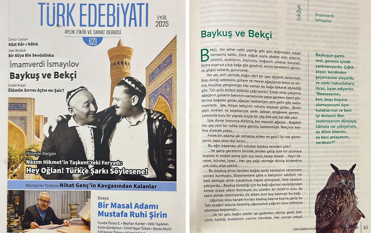 Böyük ədəbi zövqlə tərcümə edilən hekayə Türkiyədə yüksəktirajlı və ən çox oxunan “Türk ədəbiyyatı aylıq fikir və sənət dərgisi”nin sentyabr nömrəsində qardaş oxucularımıza təqdim olunub.
