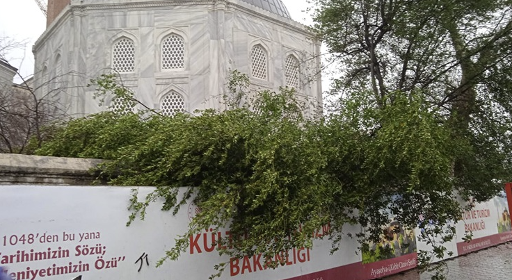 Bundan əlavə, güclü külək səbəbindən Ayasofya Böyük Məscidindəki Memar Sinan Minarəsinin uc hissəsi məscidin bağçasına aşıb.