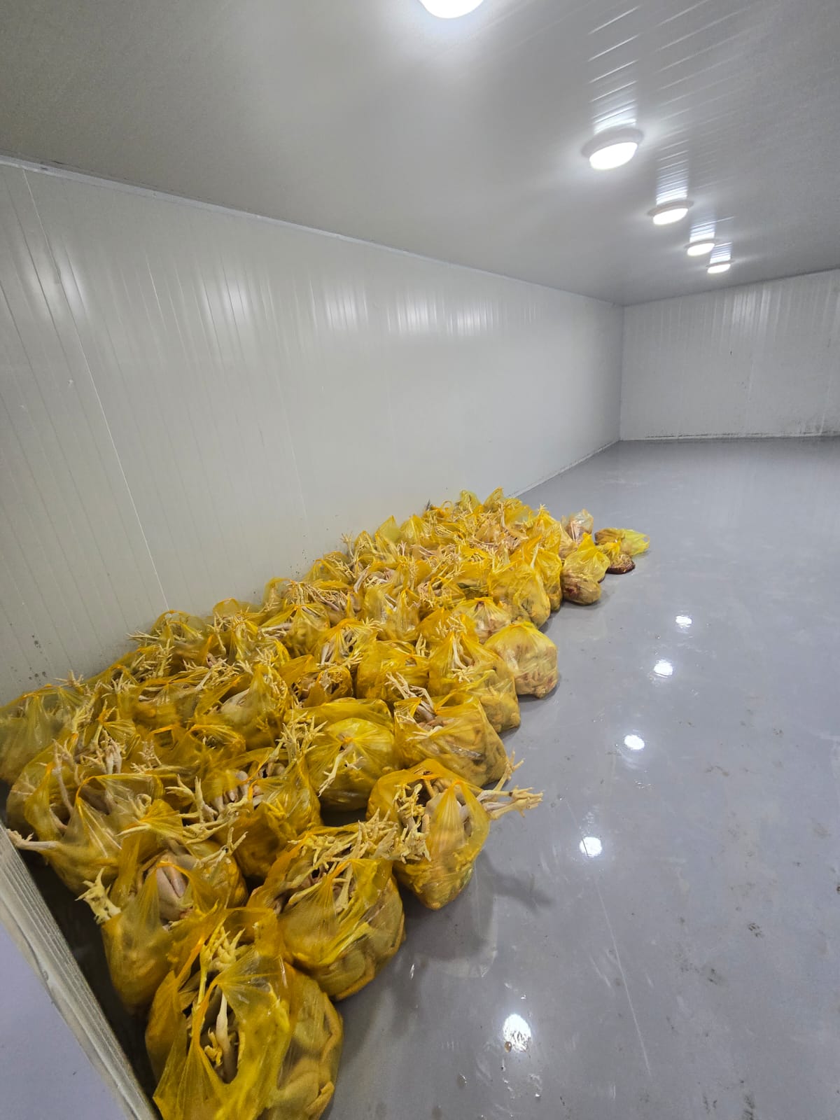 Müəssisə daxilində havalandırma sistemlərinin quraşdırılmaması nəticəsində kondensasiya prosesi zamanı yaranmış suların, o cümlədən yağış sularının tavandan birbaşa qida məhsullarının üzərinə töküldüyü, kəsim prosesində sanitar-gigiyenik tələblərə riayət edilmədiyi, tüklərin təmizlənməsi, pörtlədilməsi, içalatın təmizlənməsinin eyni sahədə həyata keçirildiyi, kəsilmiş toyuqların birbaşa döşəmə üzərinə yığıldığı müəyyən edilib. Eyni zamanda “kənd toyuğu” təəssüratı yaratmaq məqsədilə mənşəyi məlum olmayan rənglərdən istifadə edilərək toyuqların rənglənməsi halları da aşkarlanıb. Sahibkar ev quşlarının bazarlarda satışa çıxarıldığını bildirib.