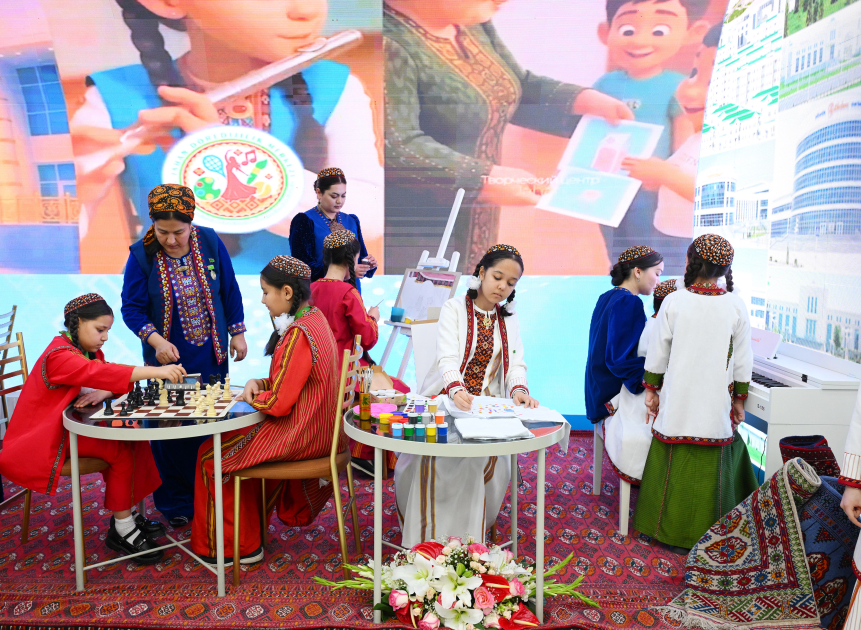 Qonaqlar əvvəlcə Türkmənistanın zəngin mədəni irsini və bugünkü uğurlarını nümayiş etdirən sərgi ilə tanış olublar. Ekspozisiyada ölkənin müxtəlif sahələrdə uğurlarını əyani təqdim edən, qadınların dövlət quruculuğu, iqtisadiyyat, elm, təhsil və səhiyyədə fəal iştirakını göstərən stendlər də yer alıb.