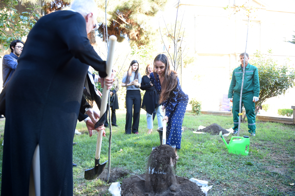 Daha sonra Leyla Əliyevanın iştirakı ilə Mərkəzin terrasında püstə ağacı əkilib.