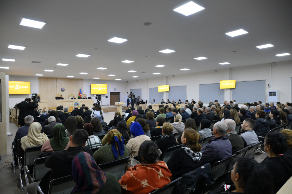 Əvvəlcə hakim Zeynal Ağayev bildirib ki, iş üzrə zərərçəkmiş şəxs qismində tanınmış bir qrup şəxs məhkəməyə müraciət ünvanlayaraq üzrlü səbəbdən prosesdə iştirak edə bilmədiklərini, ibtidai istintaq zamanı verdikləri ifadələrini təsdiqlədiklərini və iclasda elan olunmasını xahiş ediblər.