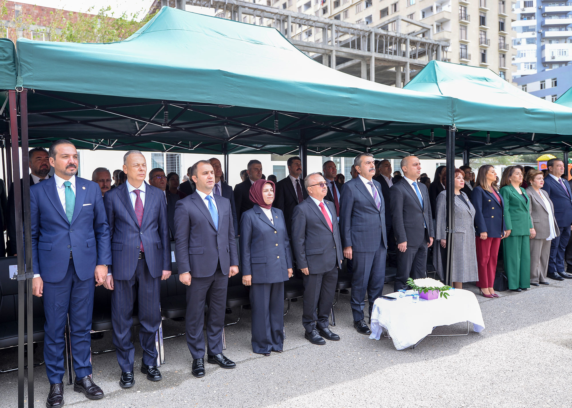 Mərasim çərçivəsində xatirə ağacı əkilib, simvolik lentkəsmə mərasimi baş tutub və qonaqlar yeni tədris binası ilə yaxından tanış olublar.