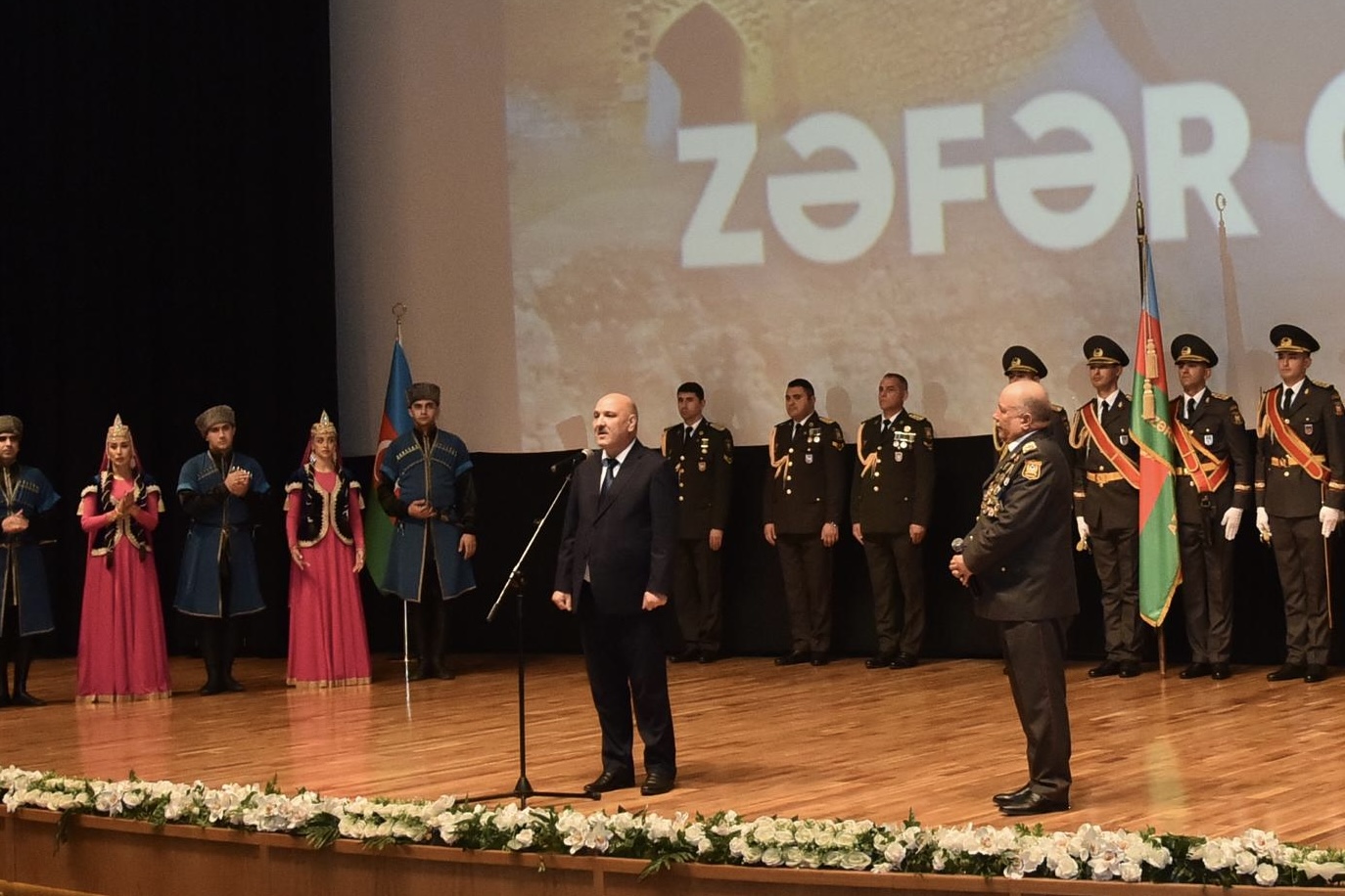 Tədbiri giriş sözü ilə açan tanınmış hərbi jurnalist Abdulla Qurbani Zəfər Bayrağının fəxri qarovulun müşayiəti ilə salona gətirildiyini elan edib.
