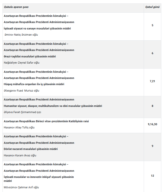 “Qafqazinfo” qəbul cədvəlini təqdim edir: