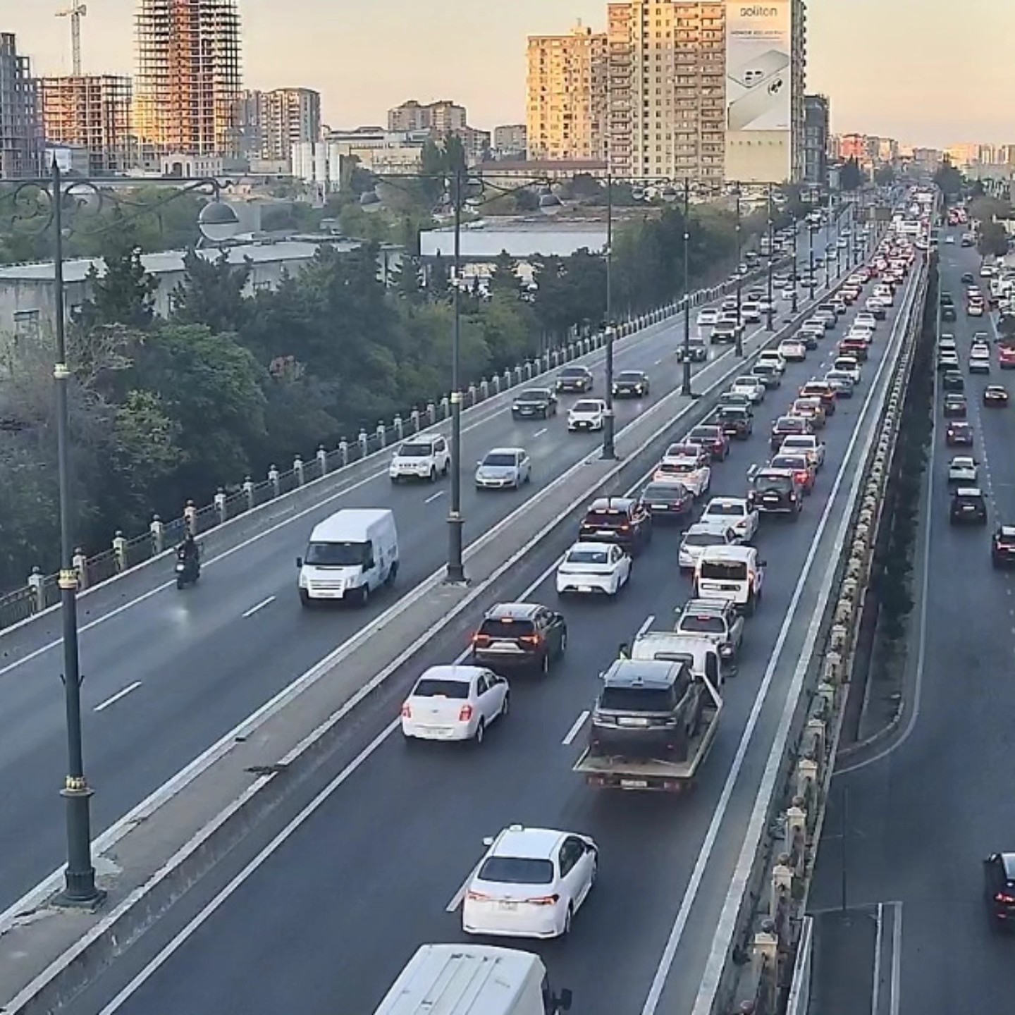 Bakının bir sıra yollarında nəqliyyatın sıxlığı müşahidə olunur.