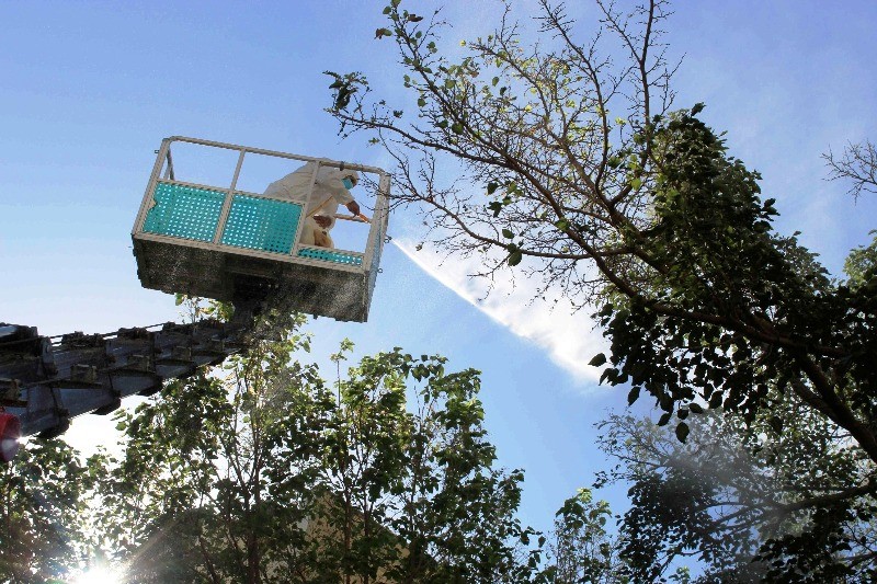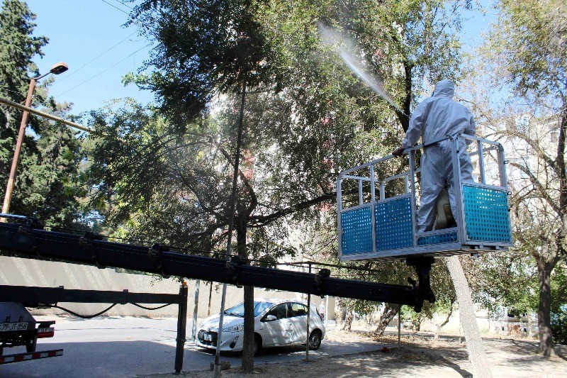 Paytaxtda Ağ Amerika kəpənəklərinə qarşı profilaktika işləri davam edir.