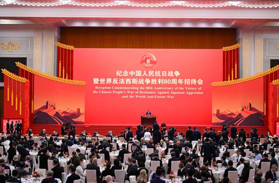 Bu gün Pekində Çin Sədri Si Cinpinin və birinci xanım Pen Liyuanın adından yapon işğalına qarşı Çin xalq müqaviməti və İkinci Dünya müharibəsində qazanılmış Qələbənin 80-ci ildönümünə həsr olunmuş paradda iştirak edən nümayəndə heyətlərinin başçılarının və xanımlarının şərəfinə ziyafət verilib və konsert proqramı təqdim olunub.